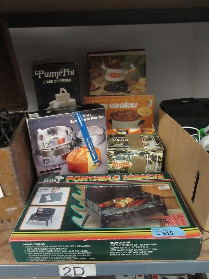 Many vintage. Slow cooker, fondue pot, pump pot, spring pan set, set of 6 drinking glasses & portable Hibachi