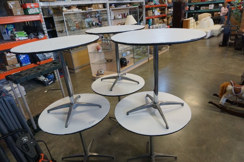 6 ROUND RESTAURANT TABLES - PAINTED WHITE