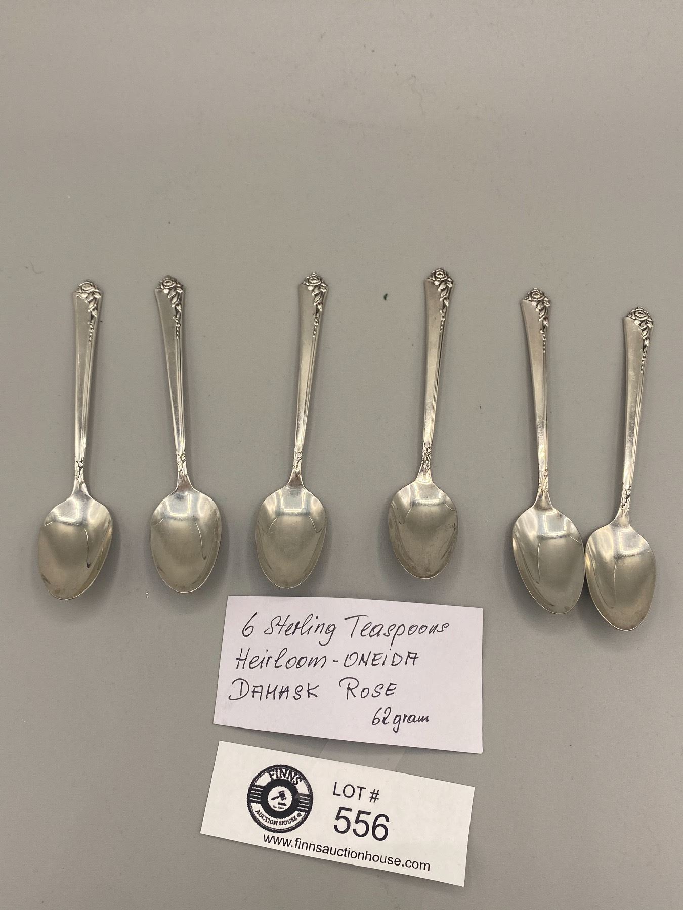 6 Sterling Tea Spoons Heirloom Oneida Damask Rose 62 Gr