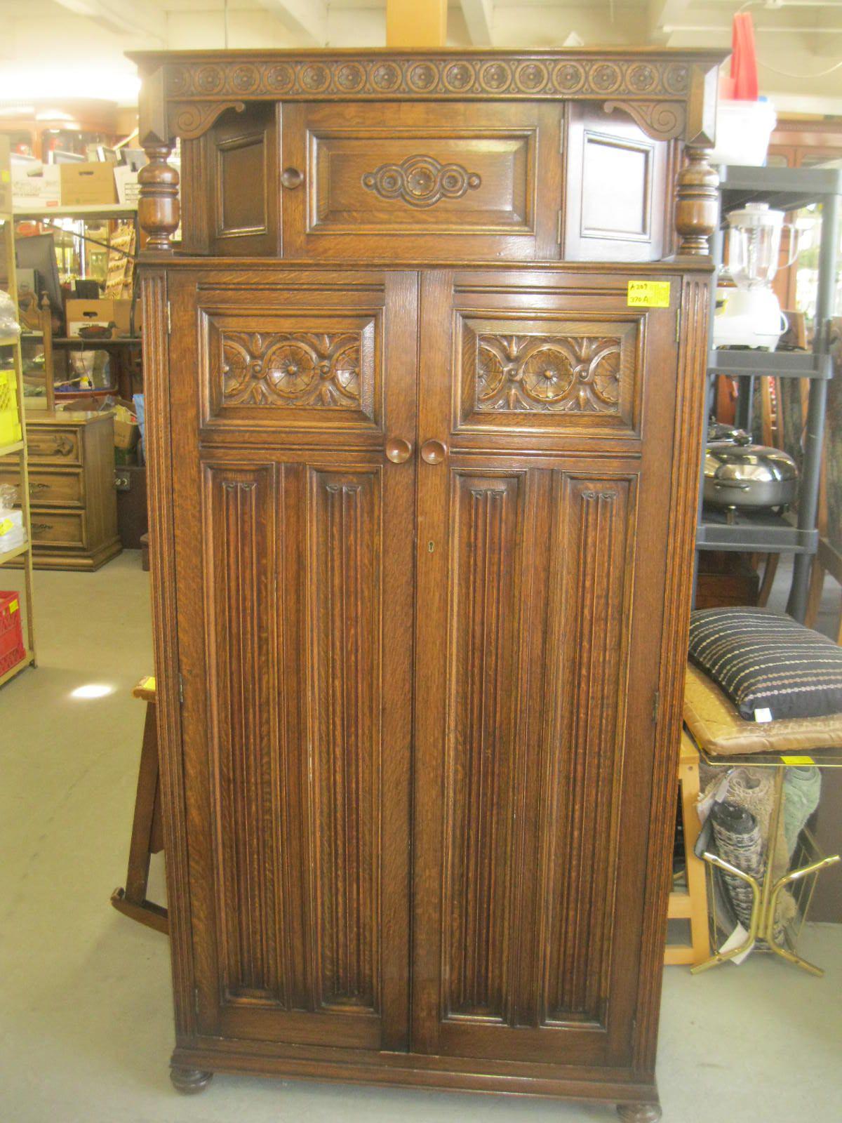6' TALL 2 DOOR ANTIQUE OAK WARDROBE