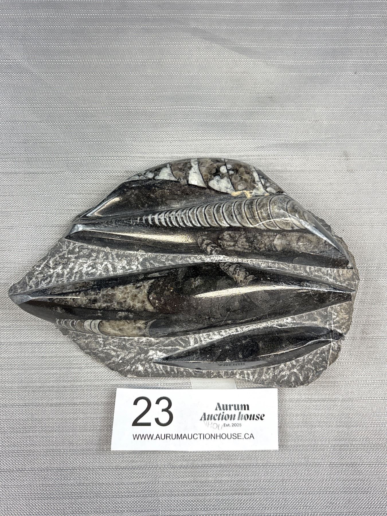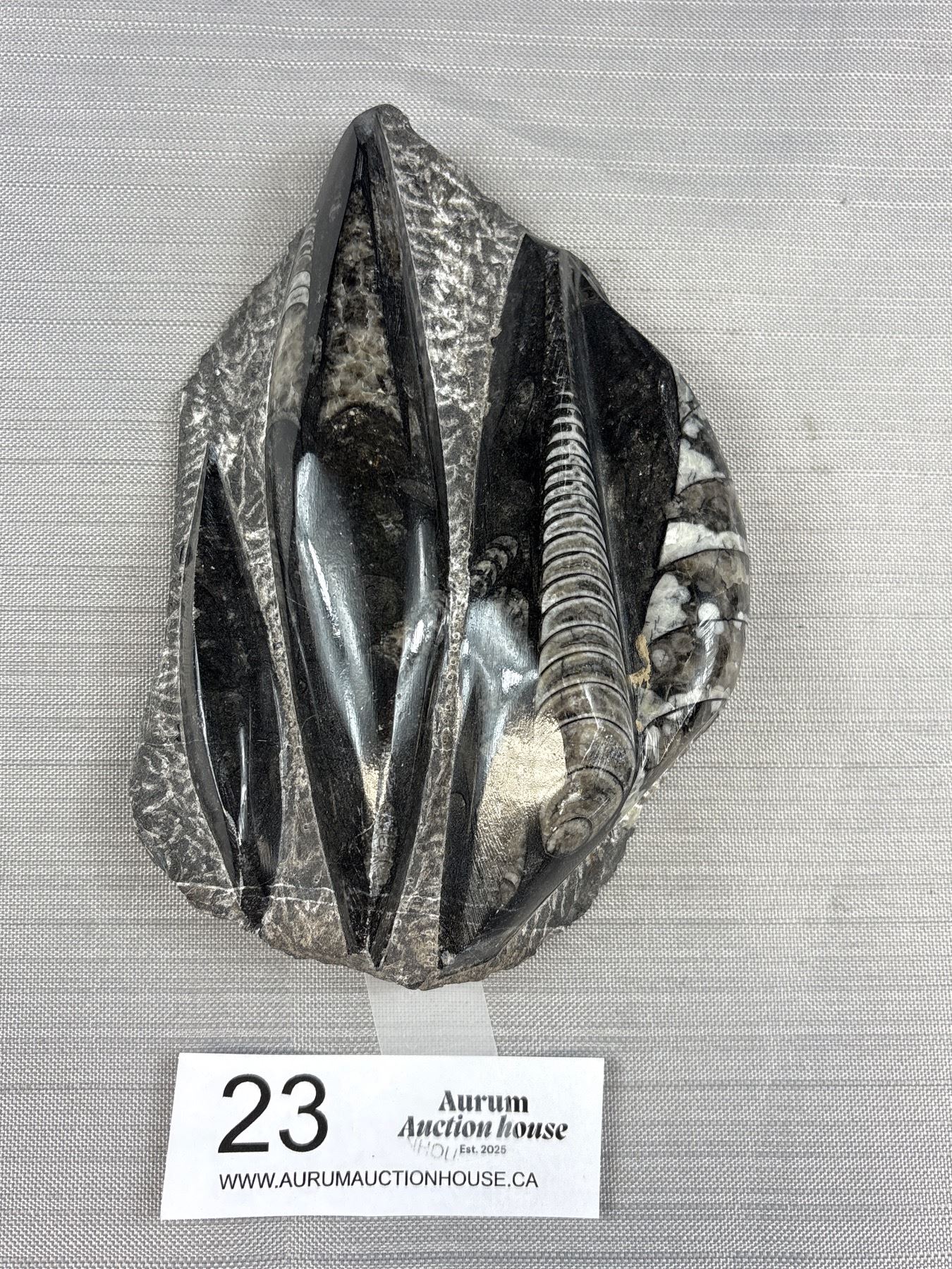 6" Tall Roughed Polished Black Fossils Orthoceras Plate