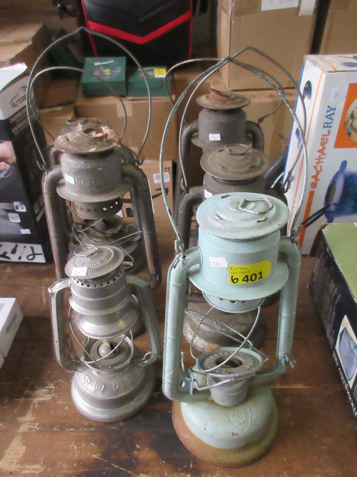 6 Vintage Beacon & Other Oil Lamps - No glass