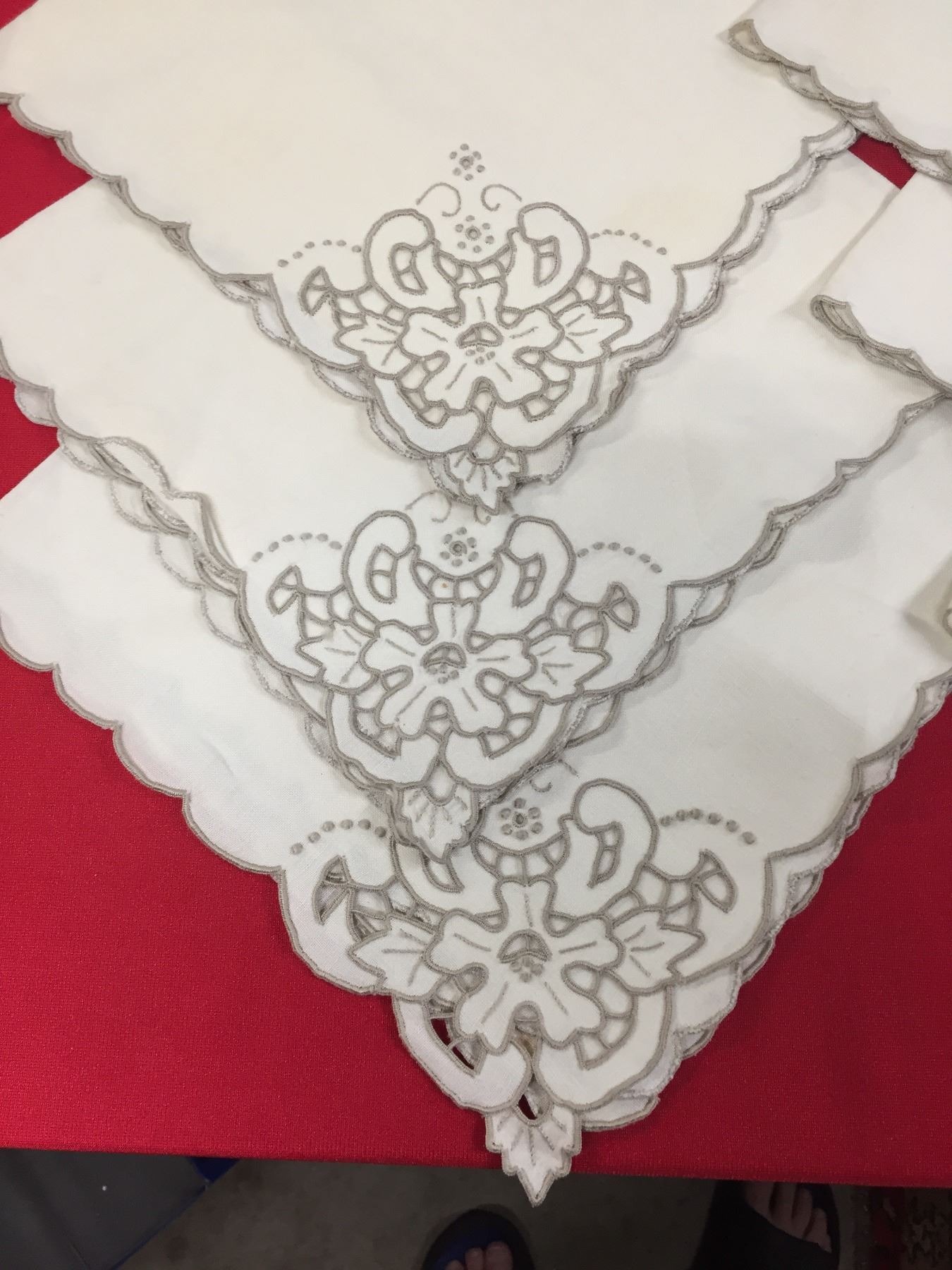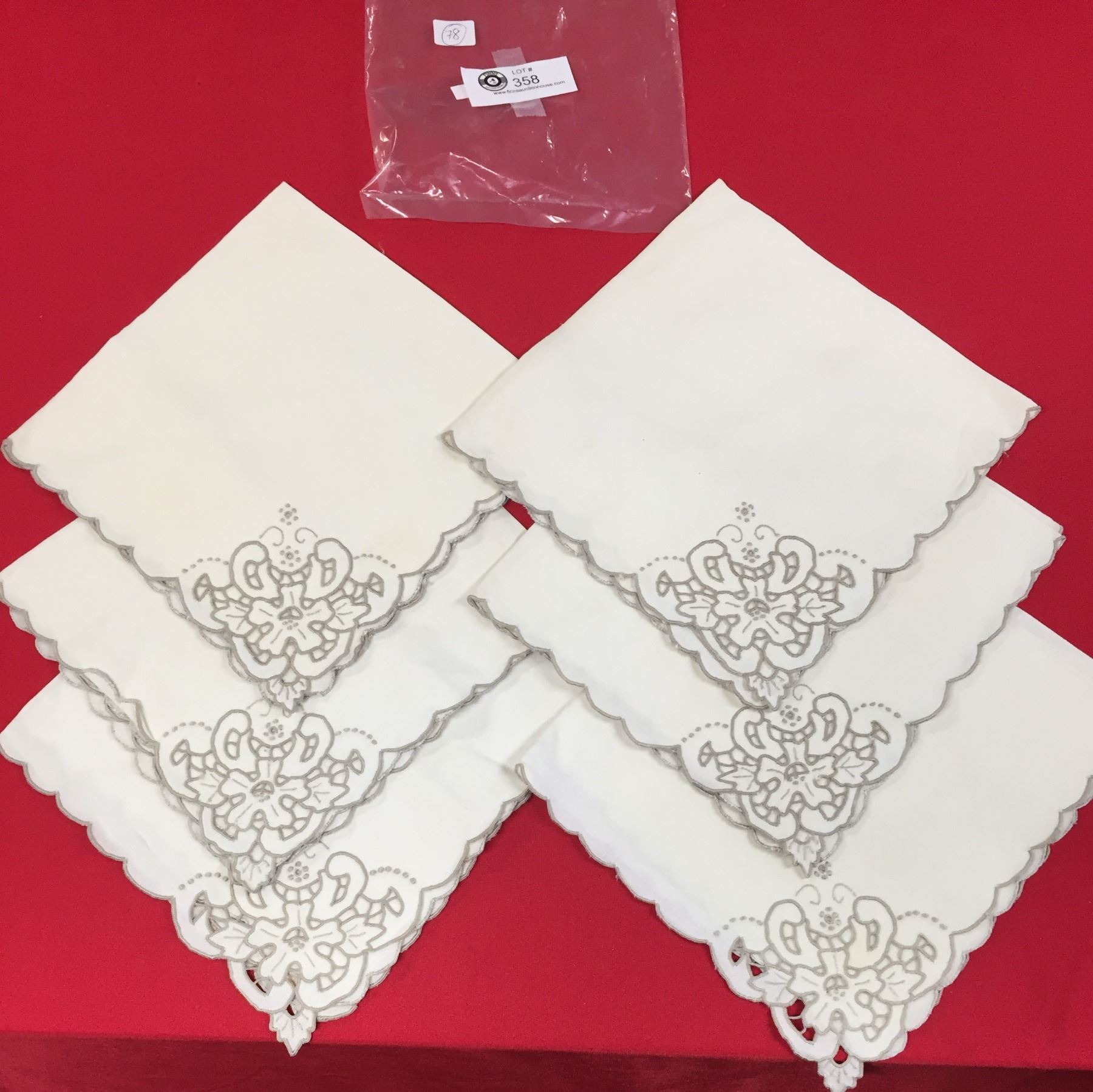 6 Vintage Embroidered Irish Linnen Napkins from 1930's