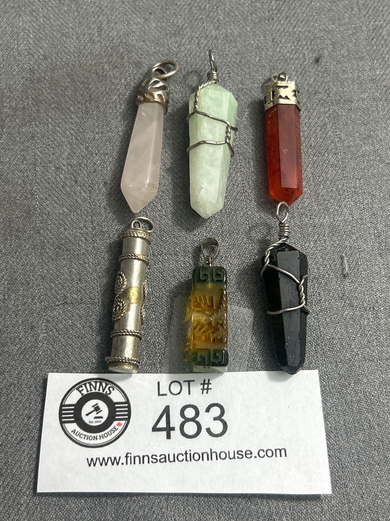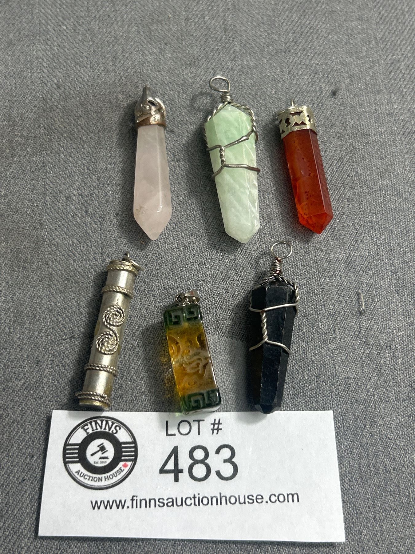 6 Vintage Pendants, Some w/ Genuine Gem Stones