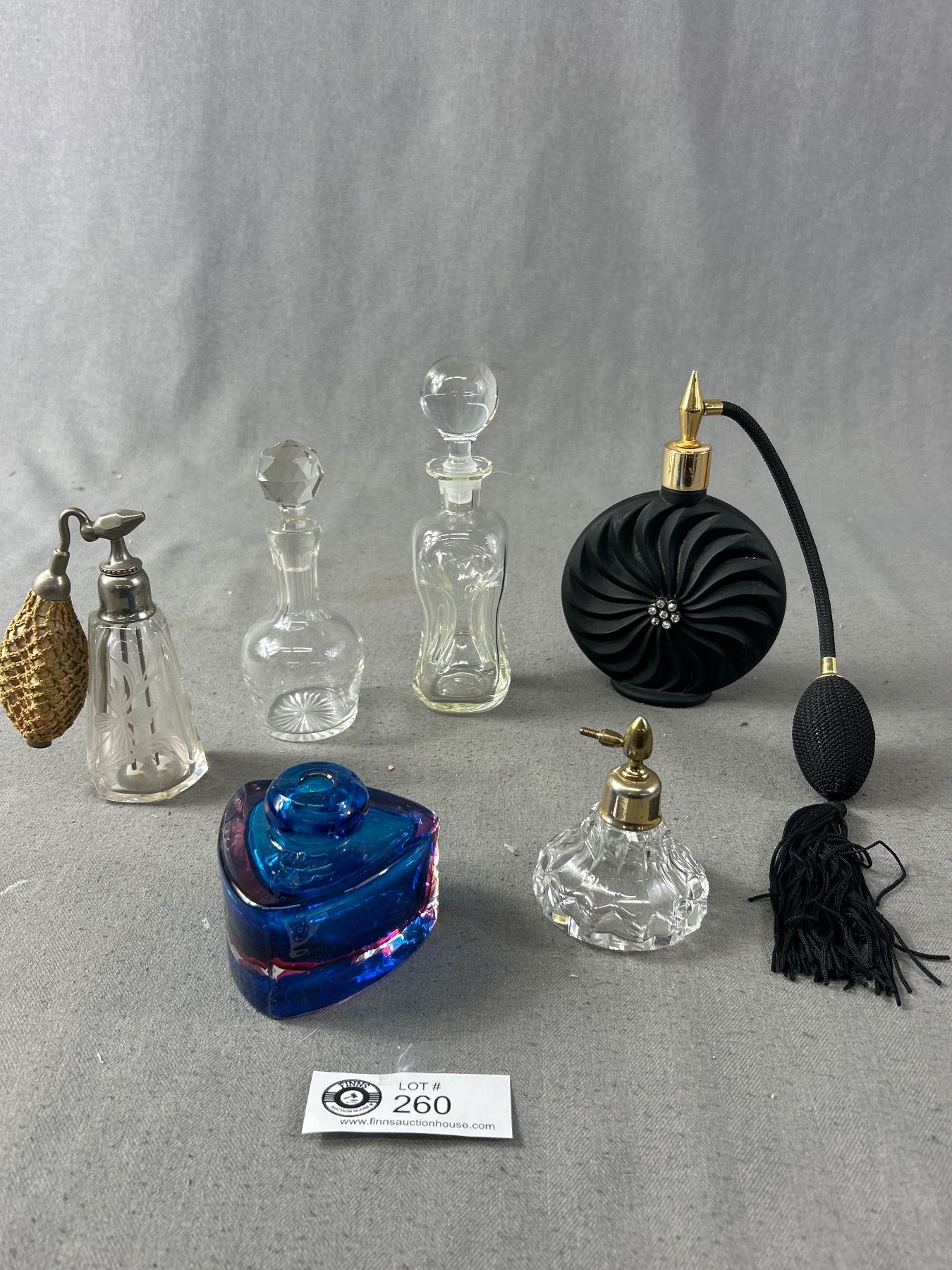 6 Vintage Perfume Bottles, One Is Missing Atomizer Pump