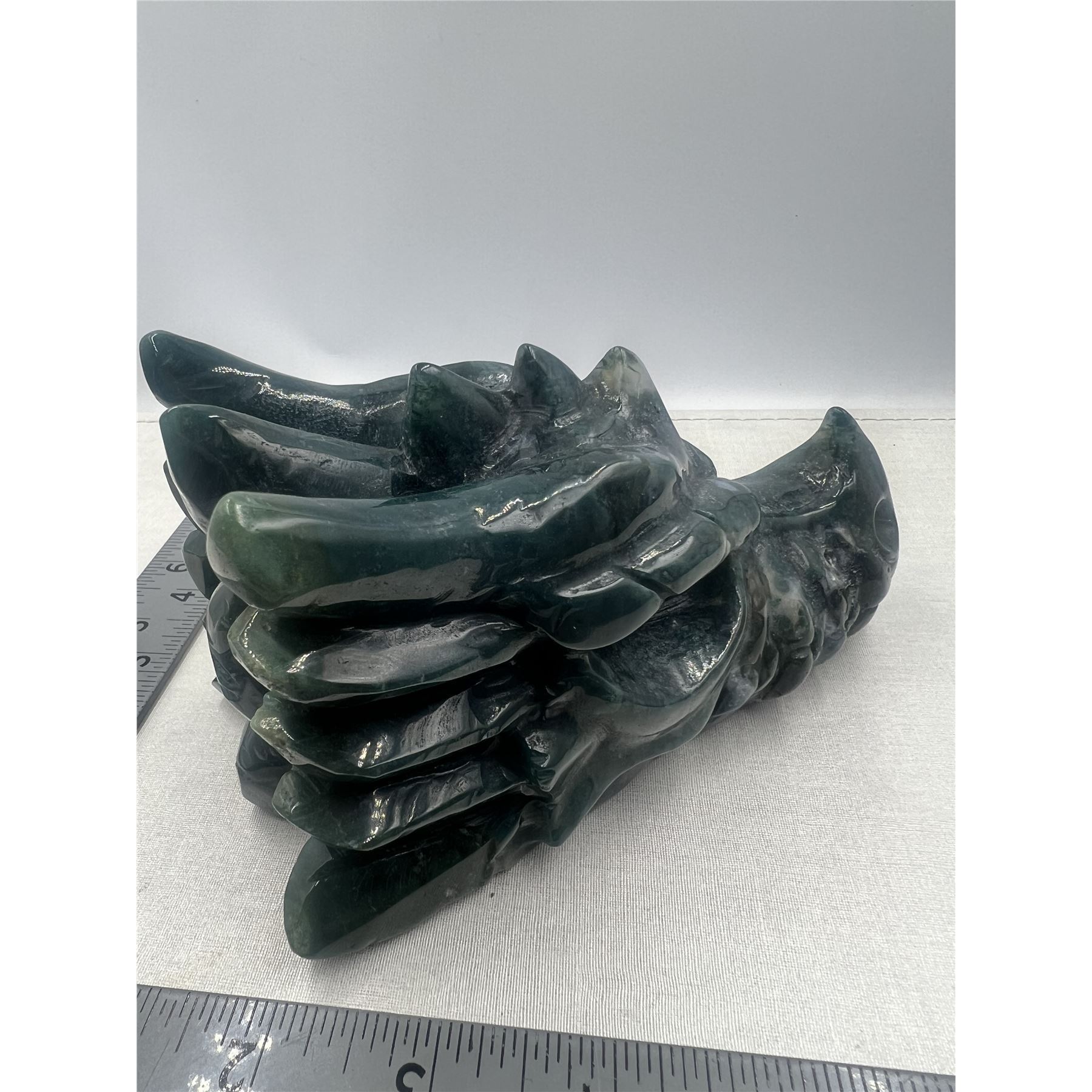 6 X 3 INCH MOSE AGATE DRAGON SKUL