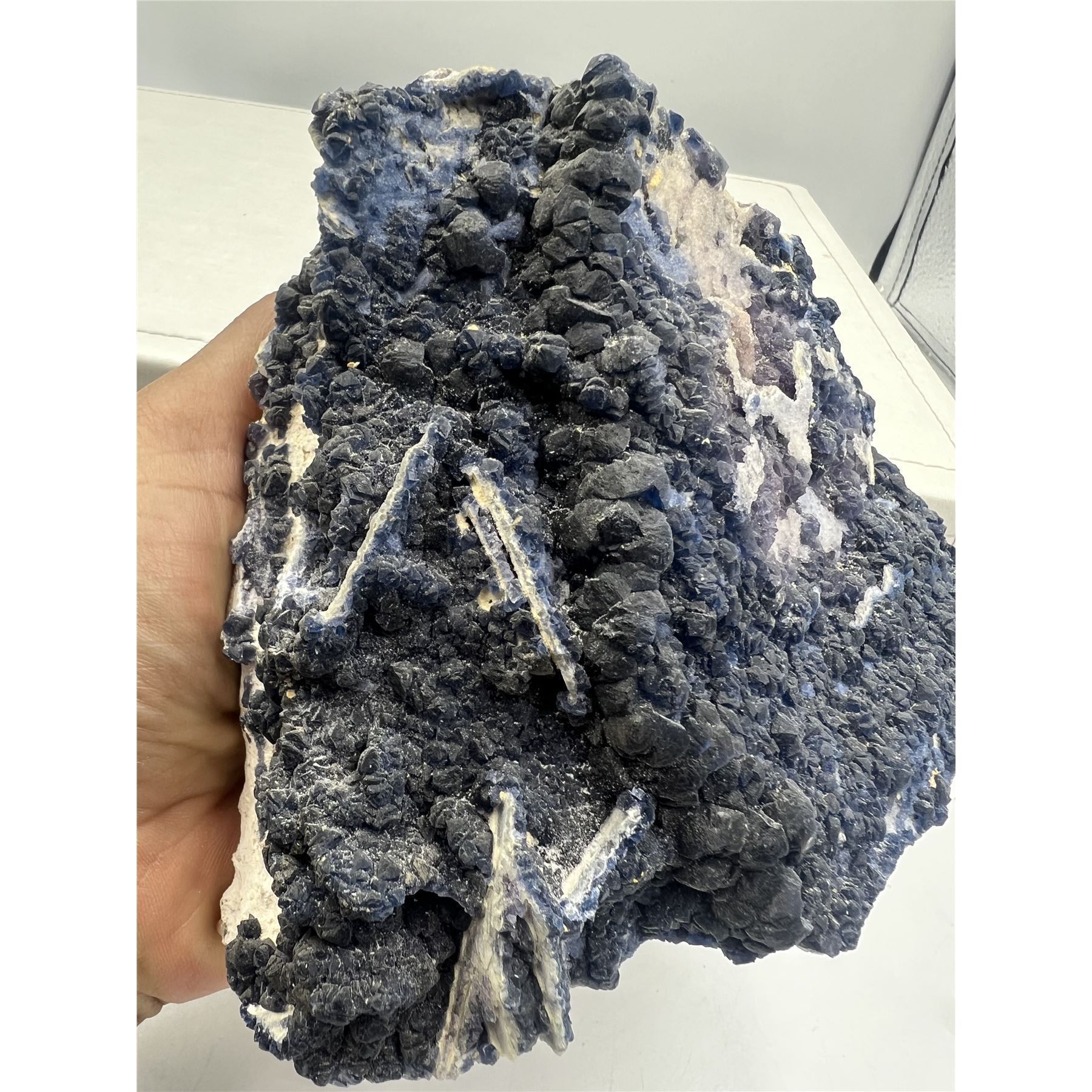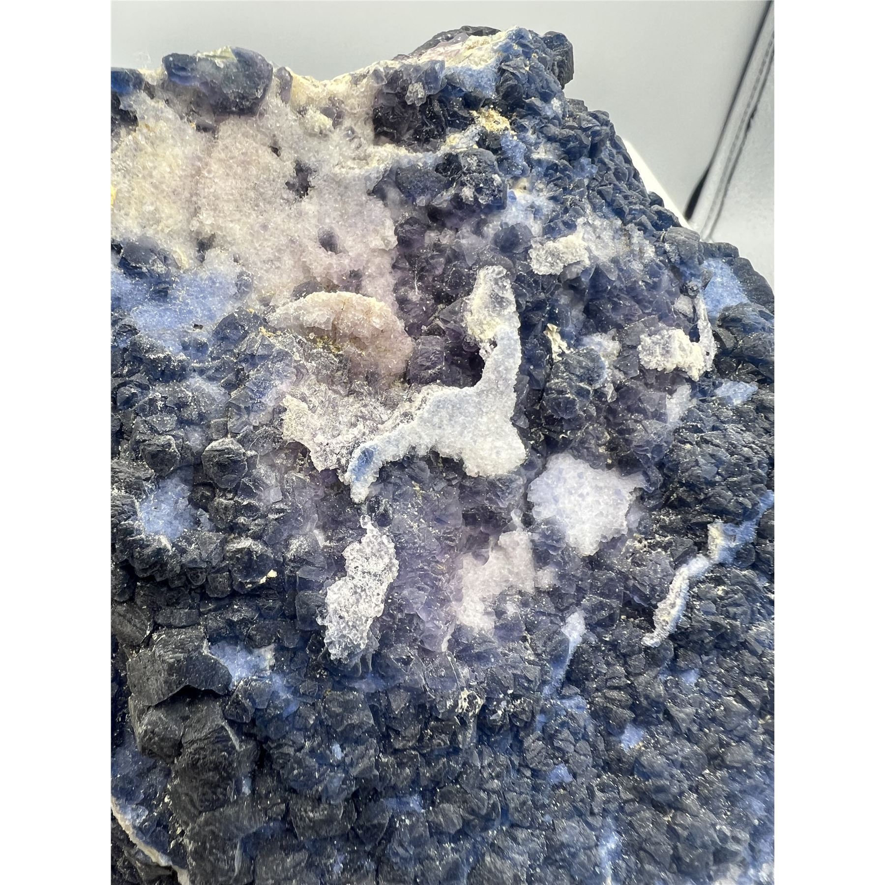 6 X 8 INCH BLUE BERRY FLUORITE SPECIMEN ON STAND