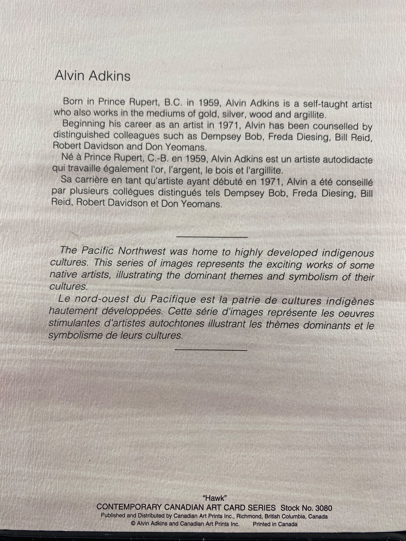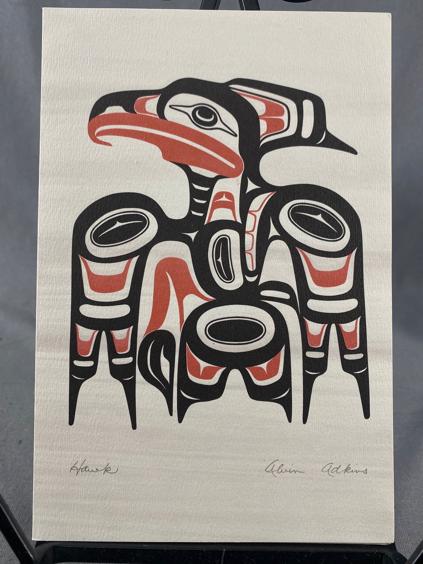 6" x 9" B.C. First Nations Card - "Hawk" By Alvin Adkins