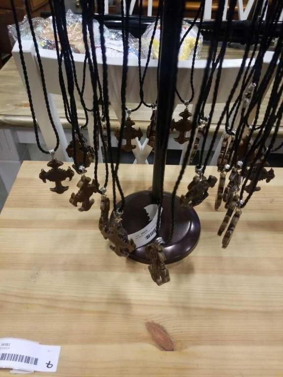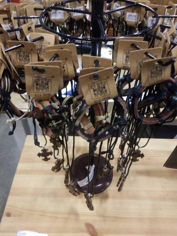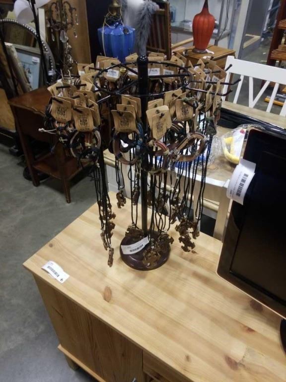 60 NEW PIECES JEWELRY ON SPINNING RACK - LEATHER NECKLACES AND BRACELETS