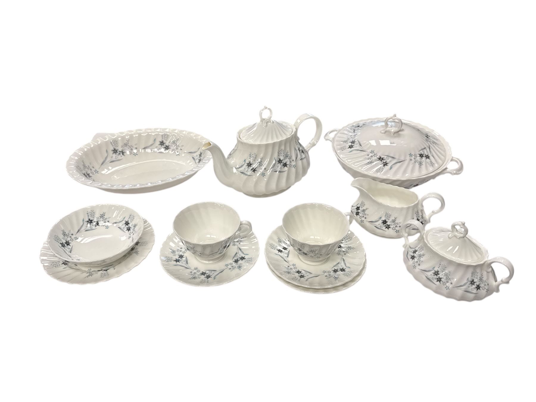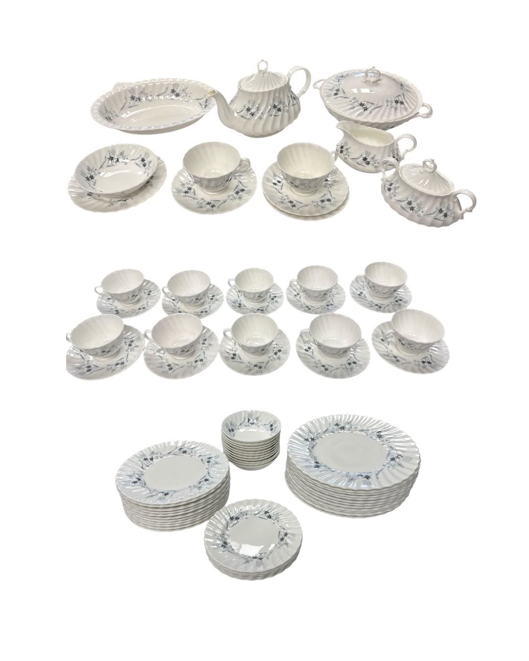 61pcs Of Vintage Royal Doulton Millefleur Porcelain Dishware: Teacups, Teapot, Soup Tureen, Saucers, Plates