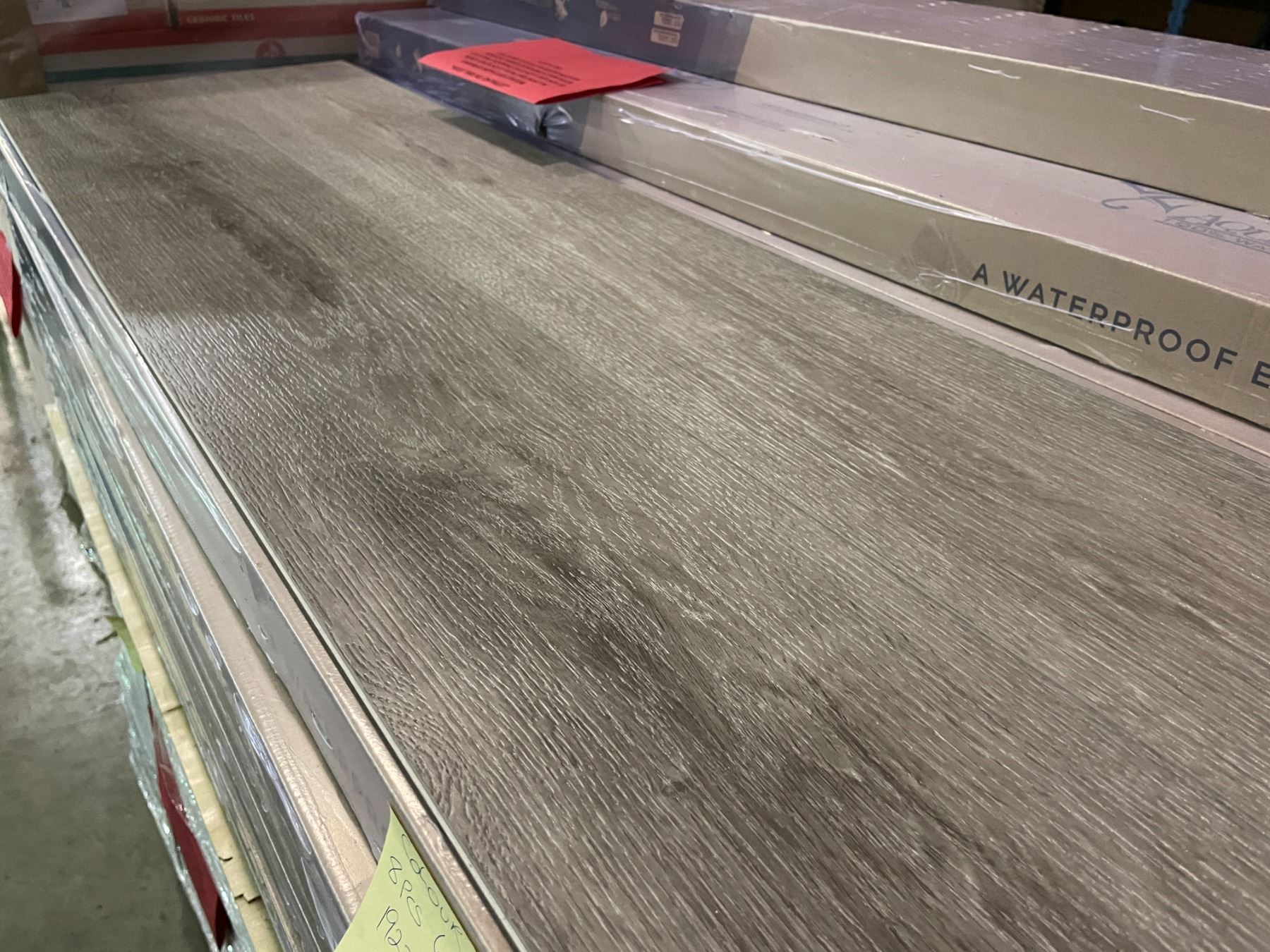 634.26 SQ FT OF EC PREMIUM AQUAFIX HARMONY SERIES DOWNING 6.5MM GLUE LESS VINYL FLOORING 19.22 SQ FT PER BOX 33 BOXES 634.26 SQ FT TOTAL HAS BUILT IN UNDERLAY WITH CLICK SYSTEM, *MUST TAKE ALL ON PALLET*