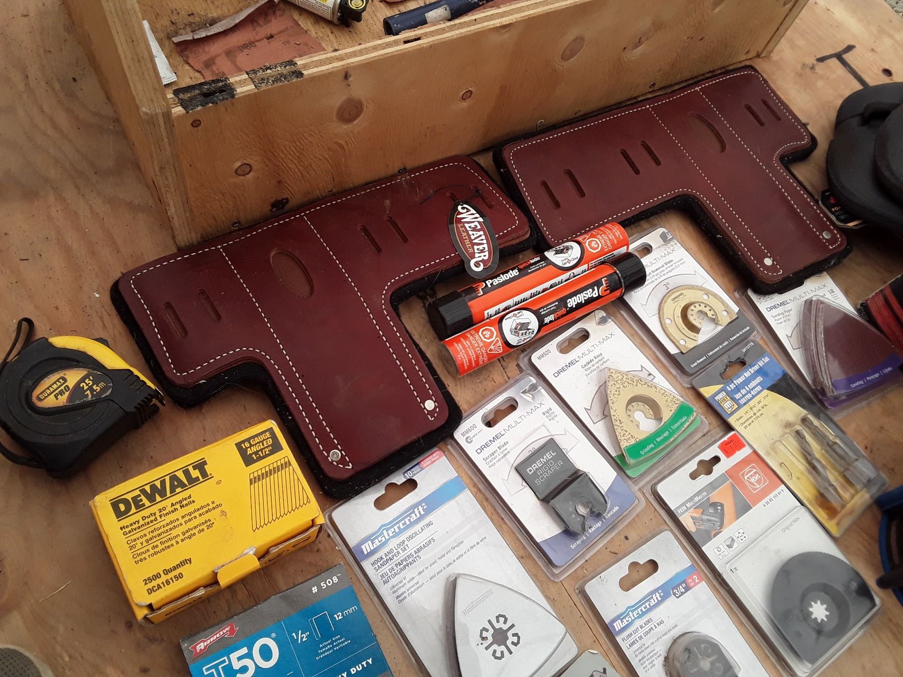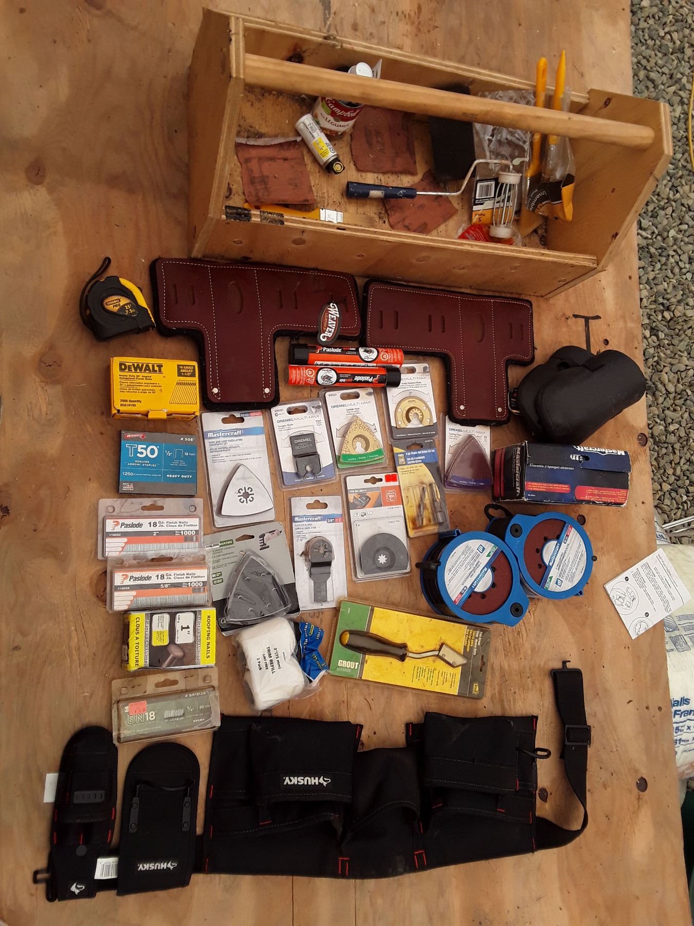 Wood Tool Caddy Full Of Hardware and Accessories - 17% Buyer Fee. Payment Processed through Live Auction World ( Visa or Master Card ) pick up Saturday, or Tuesday