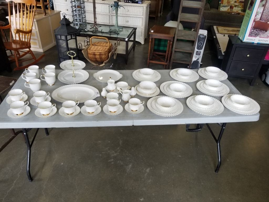68 PIECES ROYAL ALBERT VAL DOR CHINA - INCLUDES CUPS, SAUCERS, PLATES, SALT AND PEPPER, PLATTERS
