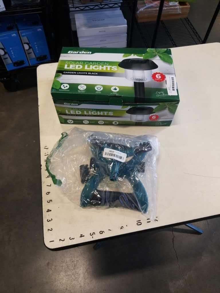 6PK SOLAR GARDEN LIGHTS AND LAWN SPRINKLER