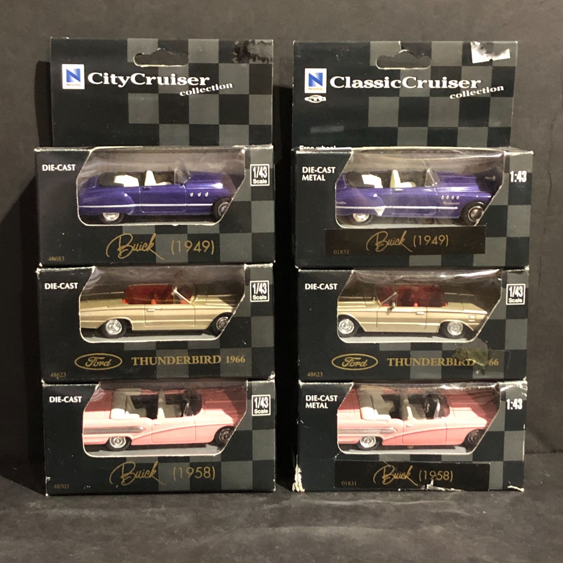 6pc NewRay 1/43 scale die-case vehicles - 1940s & 50s Buick/ Ford Thunderbird