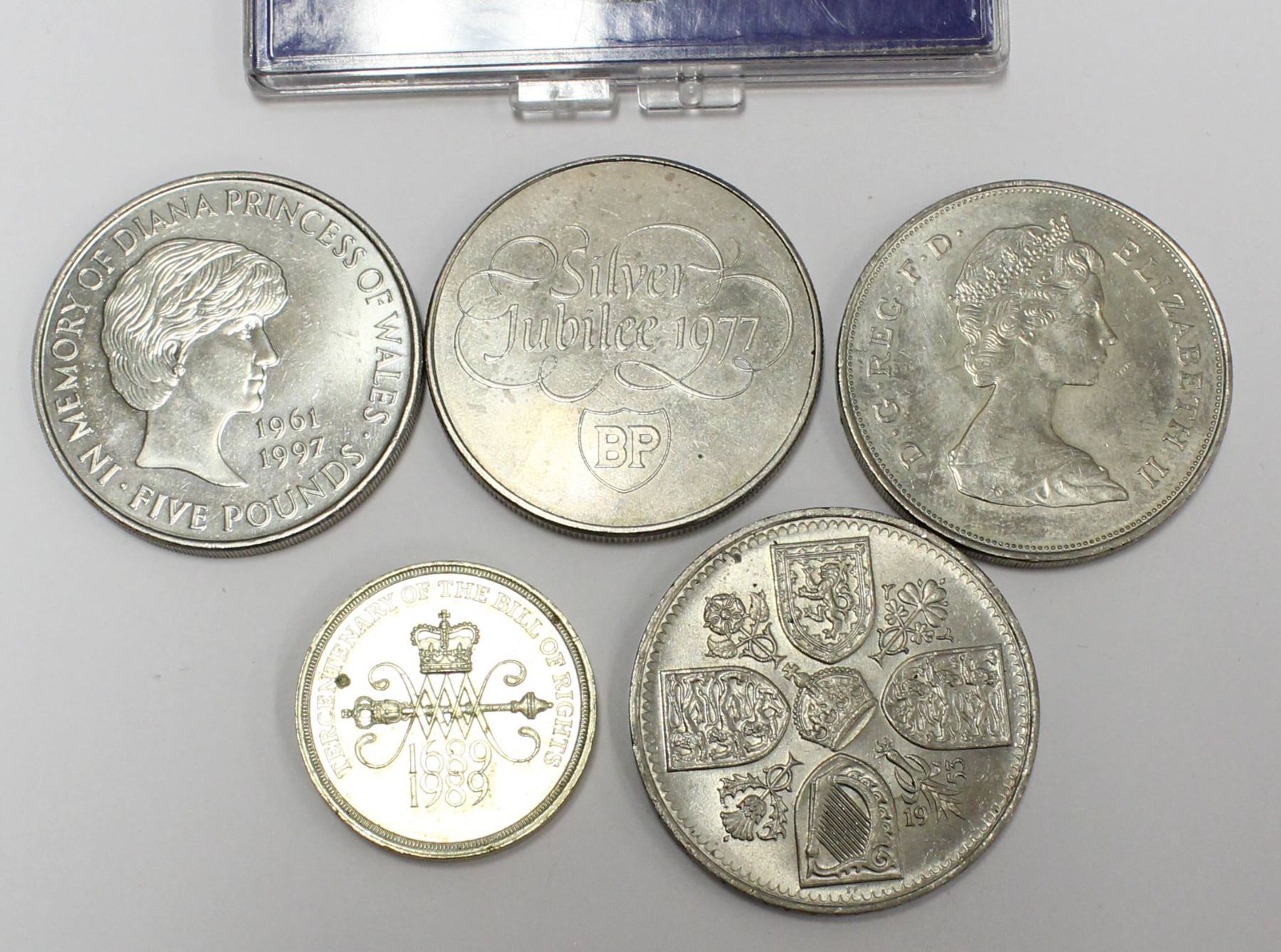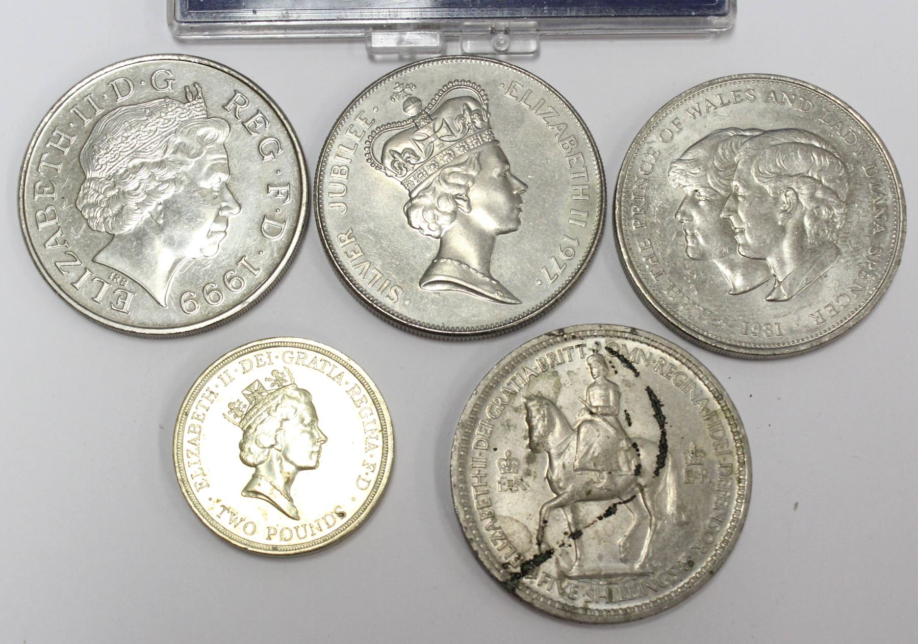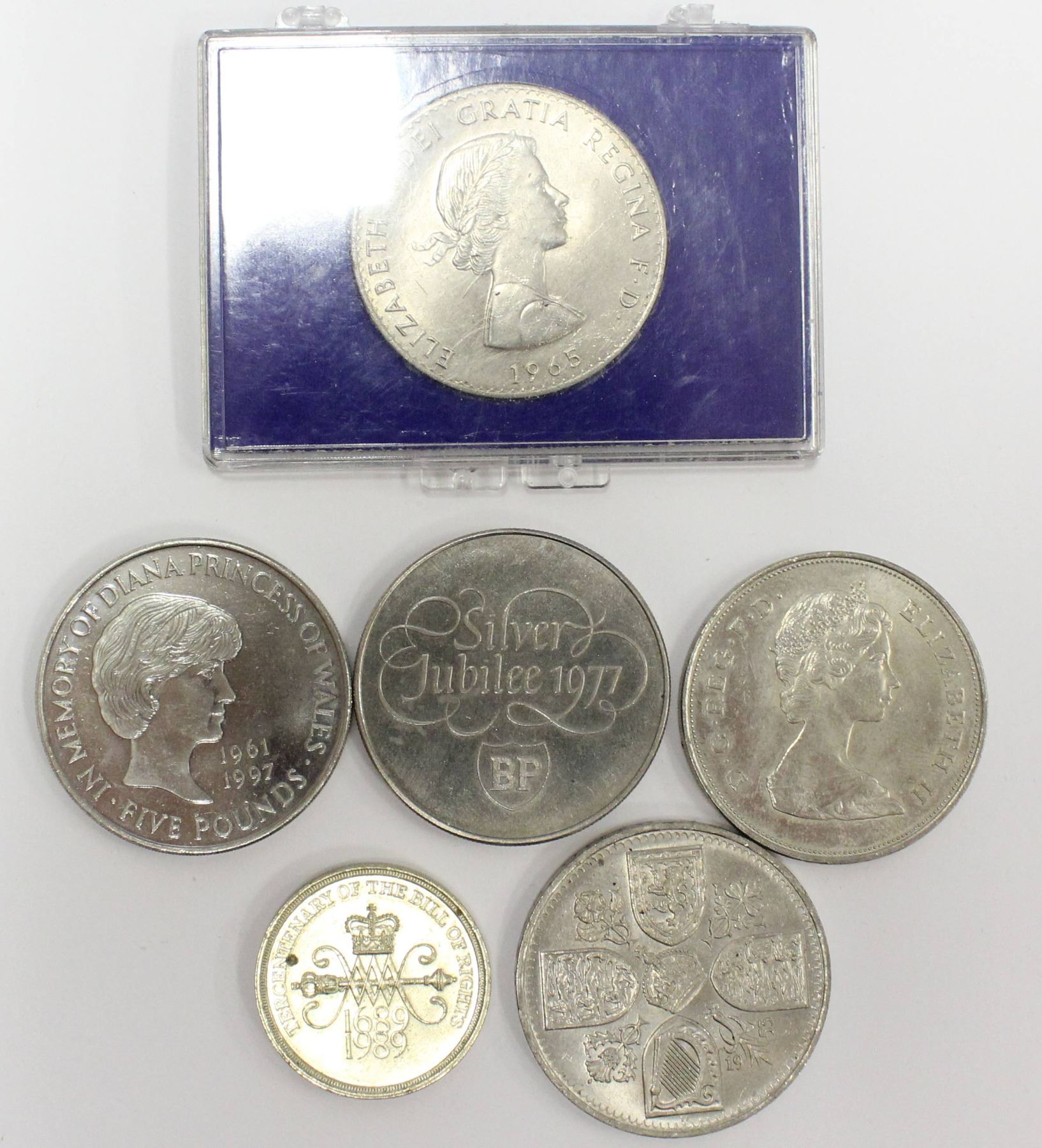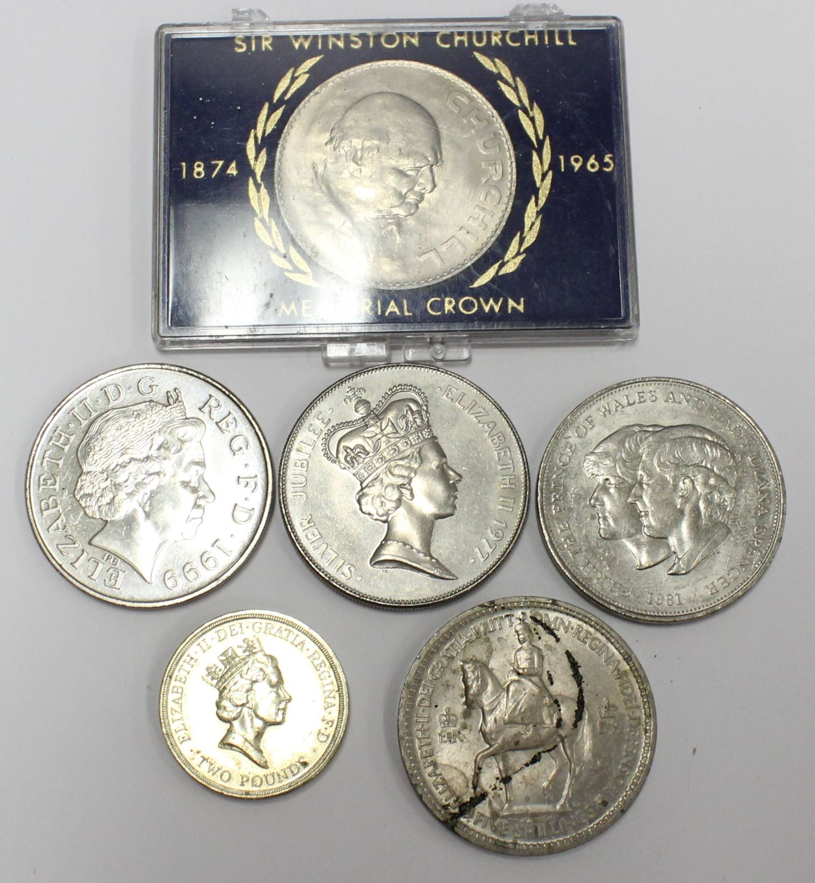 1977 Silver Jubilee Crown, 1997 Princess Diana Memorial Crown Coin, 1953 Crown, 1981 Princess Di & Charles Crown Coin, 1989 Two Pound Coin, 1965 Winston Churchill Memorial Crown Coin