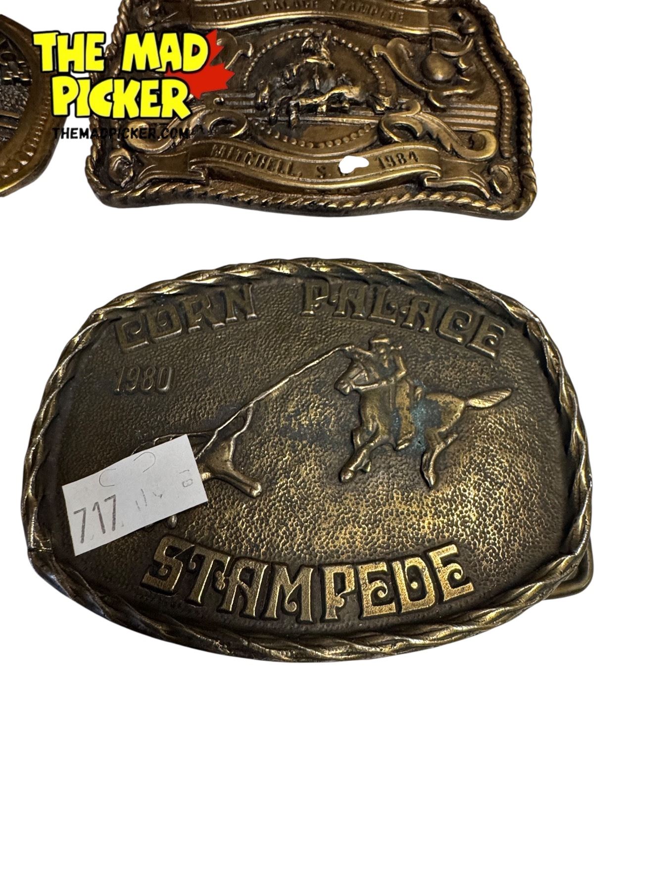 6x Vintage Metal Stampede Belt Buckles & Leather Belt Size 34: