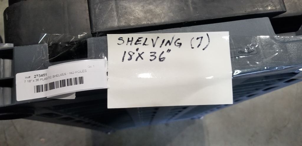 7 18" x 36 PLASTIC SHELVES - NO POLES