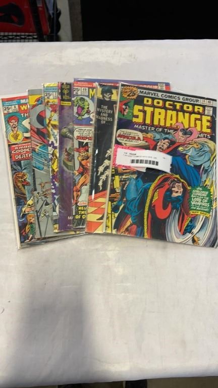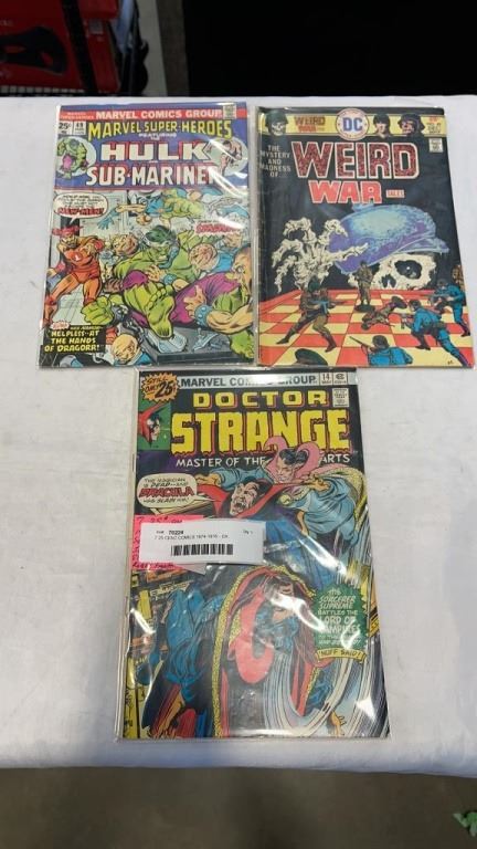 7 25 CENT COMICS 1974-1976 - DR. STRANGE, SUPERMAN, IRON MAN, HULK, SINBAD, ETC.