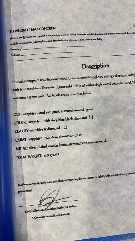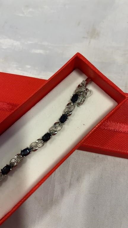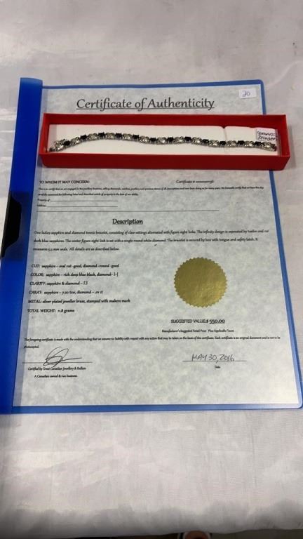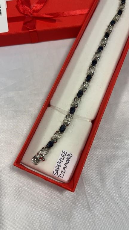 7.2CT SAPPHIRE AND DIAMOND TENNIS BRACELET, FIGURE 8 LINK DESIGN 12 OVAL SAPPHIRES INCLUDES $280 CERTIFICATE