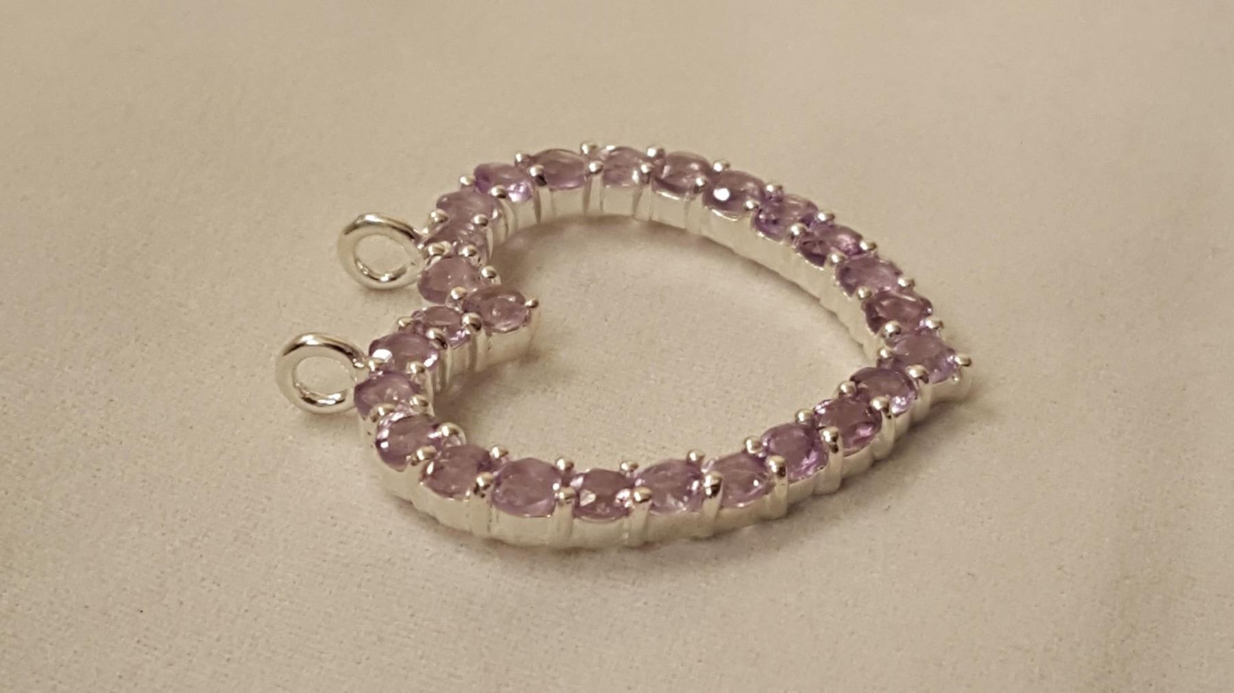 PRETTY SPARKLING 7.50 CT PINK ROSE DE FRANCE AMETHYST HEART PENDANT. THESE NEAR FLAWLESS GEMSTONES ARE MOUNTED IN SOLID .925 STERLING SILVER. 20 CTTW OR 4 GRAMS
