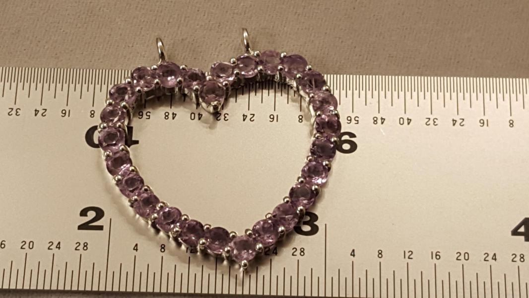 PRETTY SPARKLING 7.50 CT PINK ROSE DE FRANCE AMETHYST HEART PENDANT. THESE NEAR FLAWLESS GEMSTONES ARE MOUNTED IN SOLID .925 STERLING SILVER. 20 CTTW OR 4 GRAMS