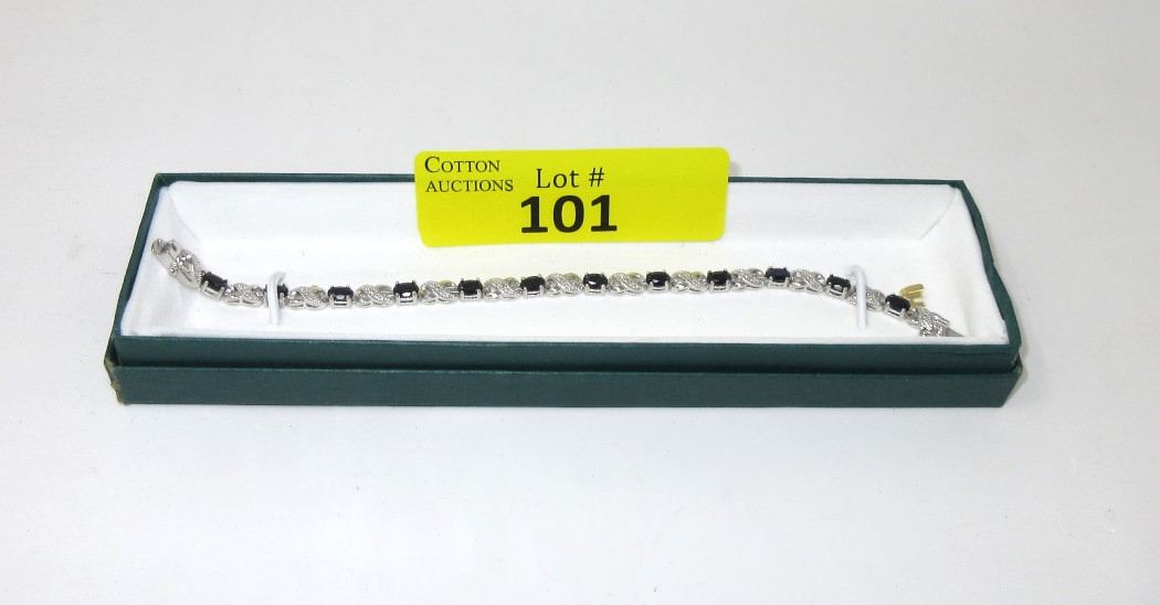 Rich, deep, blue black, oval sapphires alternating with figure 8 links. Includes $575 certificate.