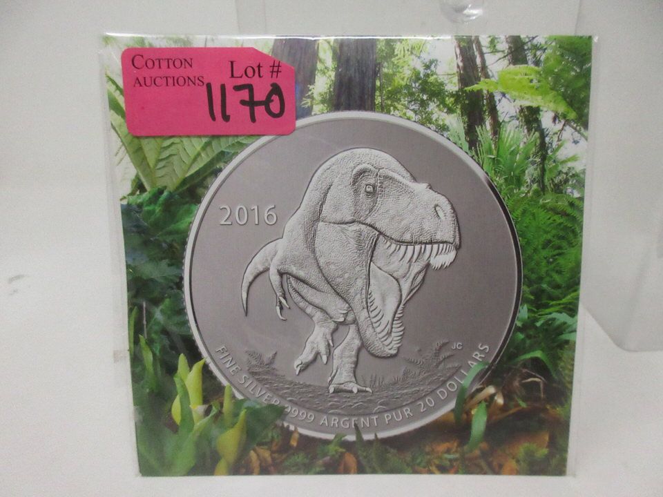 7.96 Grams .9999 Silver 2016 Canada Tyrannosaurus Rex $20 Silver Coin