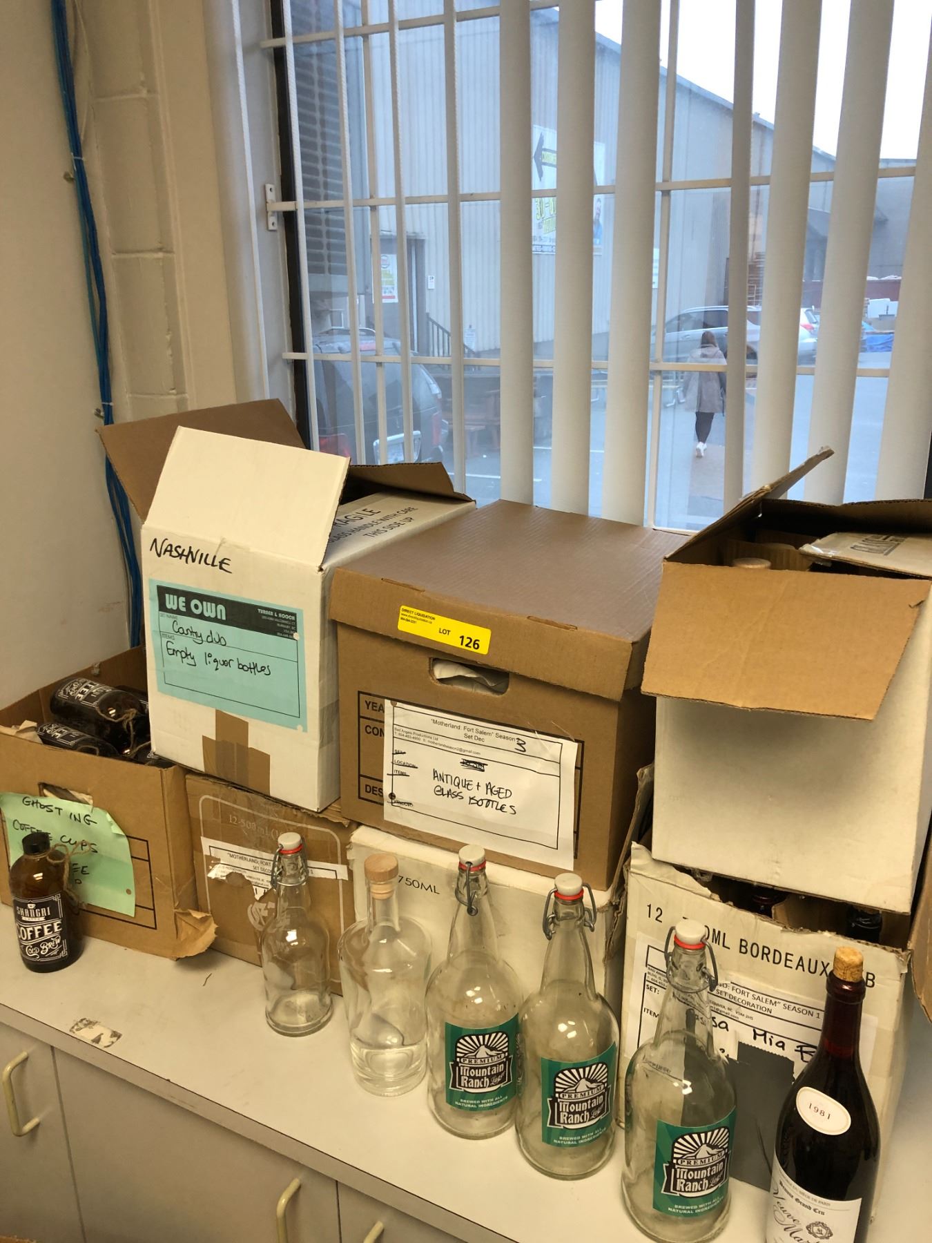 7 Boxes Glass Bottles from a move set - some are antiqued and aged. Relabelled.