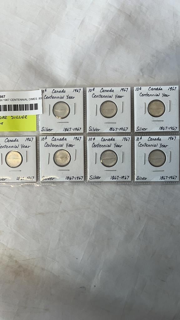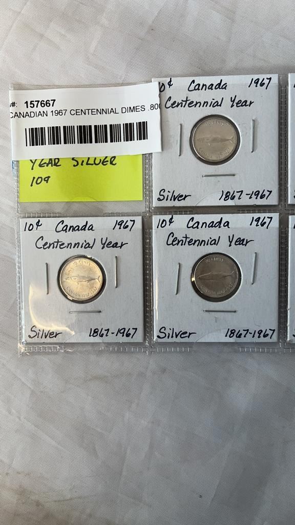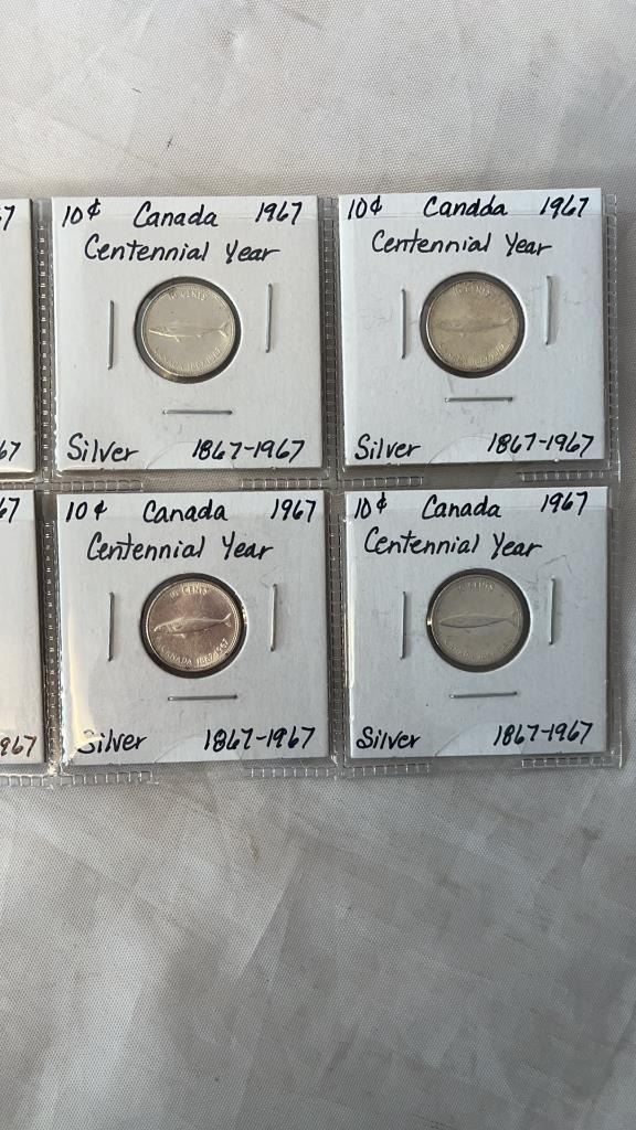 7 CANADIAN 1967 CENTENNIAL DIMES .800 SILVER