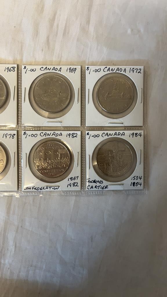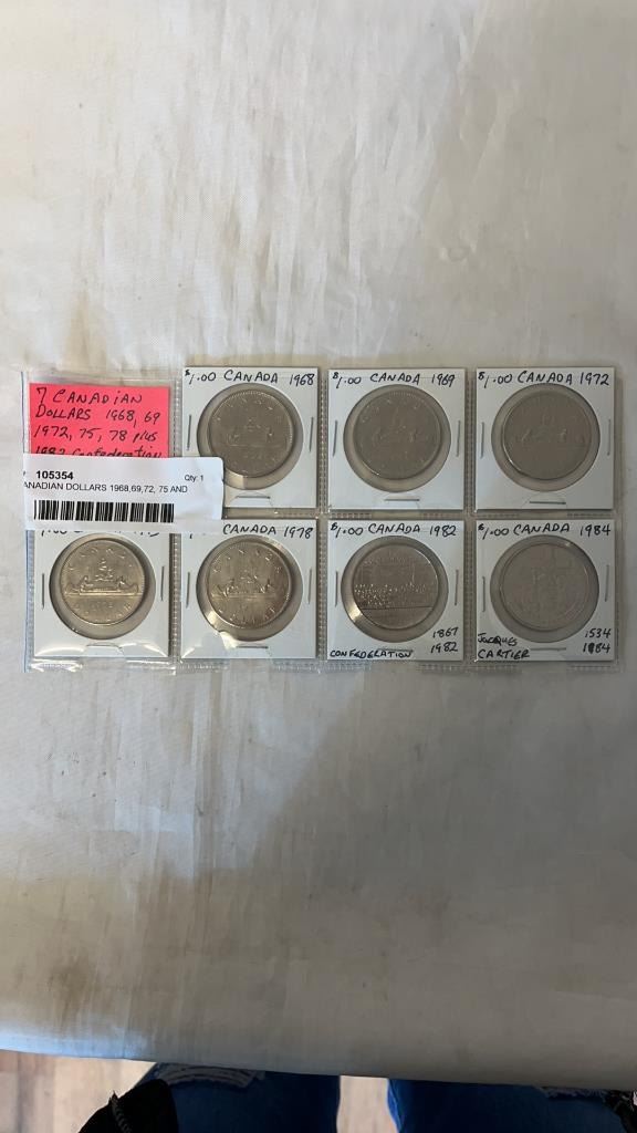 7 CANADIAN DOLLARS 1968,69,72, 75 AND 1982 CONFEDERATION 1984 JACQUES CARTIER DOLLAR