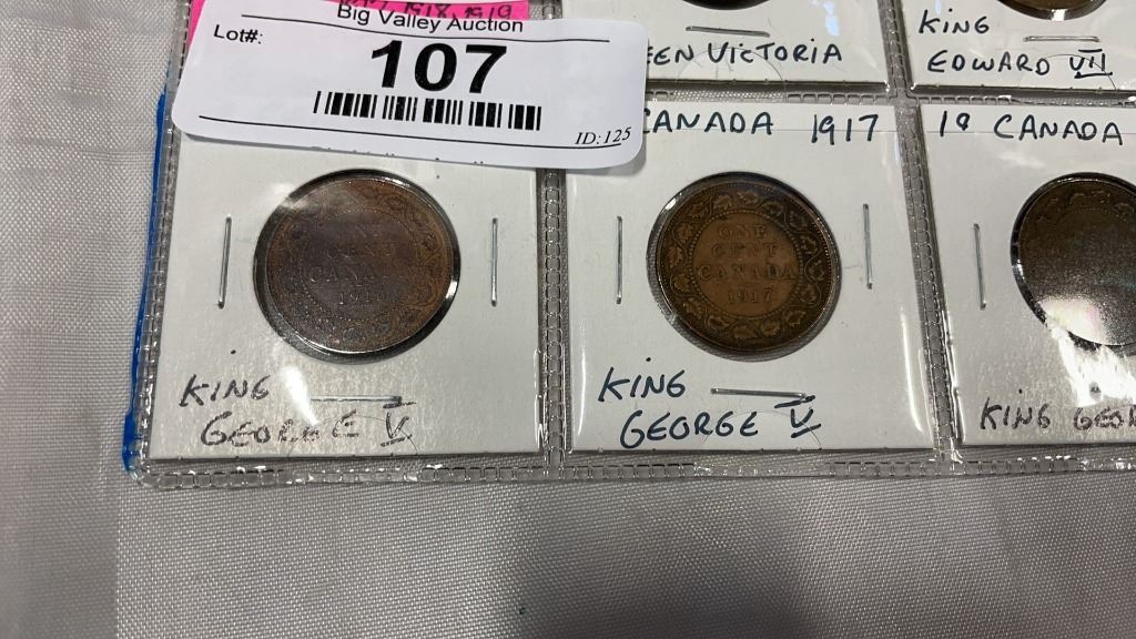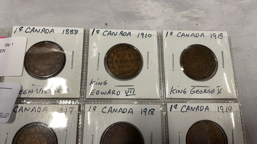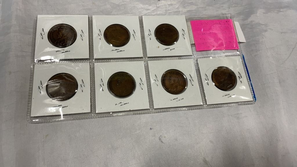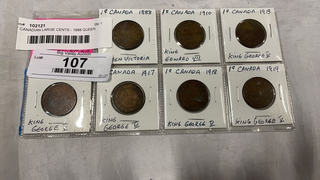 7 CANADIAN LARGE CENTS - 1888 QUEEN VICTORIA, 1910 KING EDWARD VII, 1913, 1916, 1917, 1918, 1919 KING GEORGE V