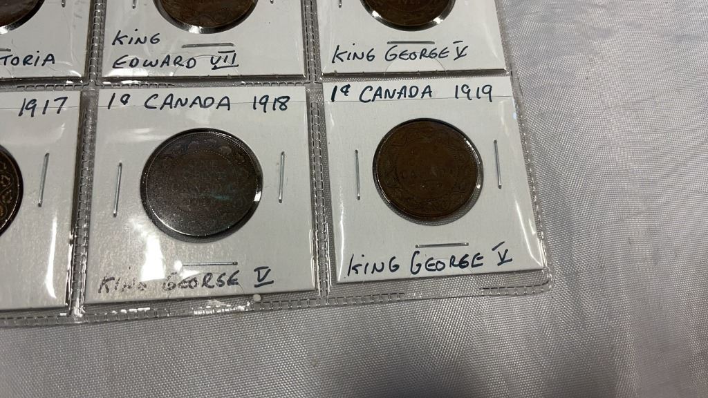 7 CANADIAN LARGE CENTS - 1888 QUEEN VICTORIA, 1910 KING EDWARD VII, 1913, 1916, 1917, 1918, 1919 KIN