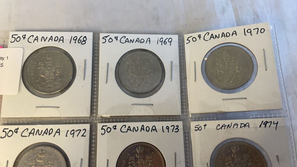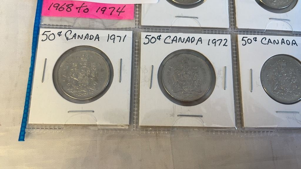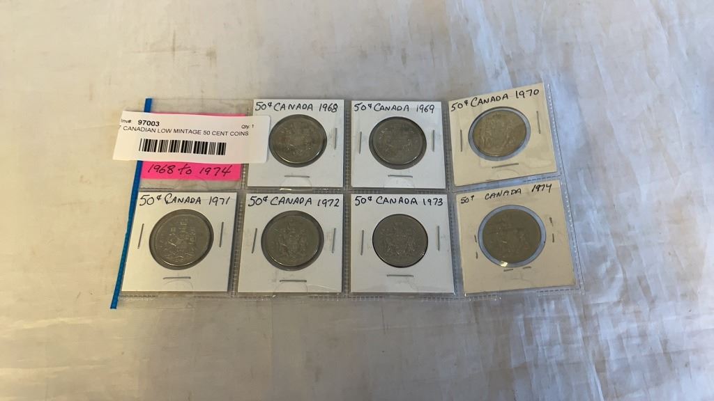7 CANADIAN LOW MINTAGE 50 CENT COINS 1968-1974