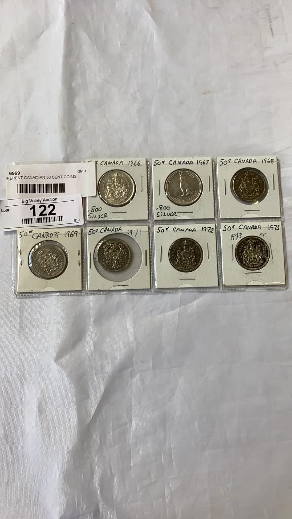 7 DIFFERENT CANADIAN 50 CENT COINS 1966-1967 .800 SILVER