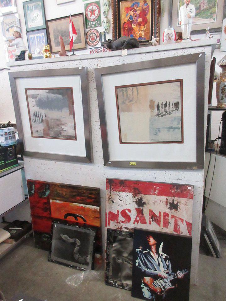 2 Gerard Wall Art - 34" x 34" framed, Insanity Poster Mounted On Board- 30" x 40", 2 Framed Snake Prints, Canvas Wall Art of Guitarist - 19" x 24", & Roth Canvas Wall Art - 34" x 34".