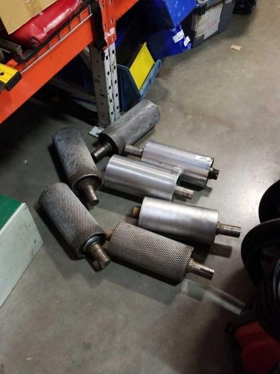 7 HEAVY DUTY CONVEYOR ROLLERS - 12 INCH WIDE ROLLER 17 INCH SPINDLE