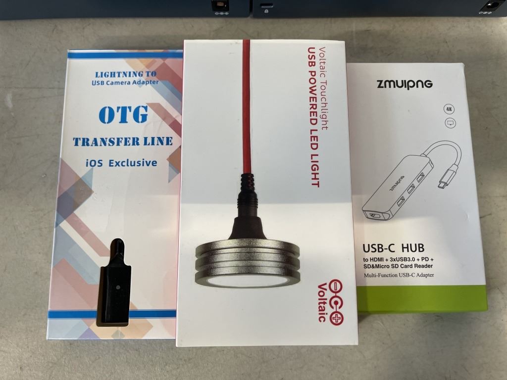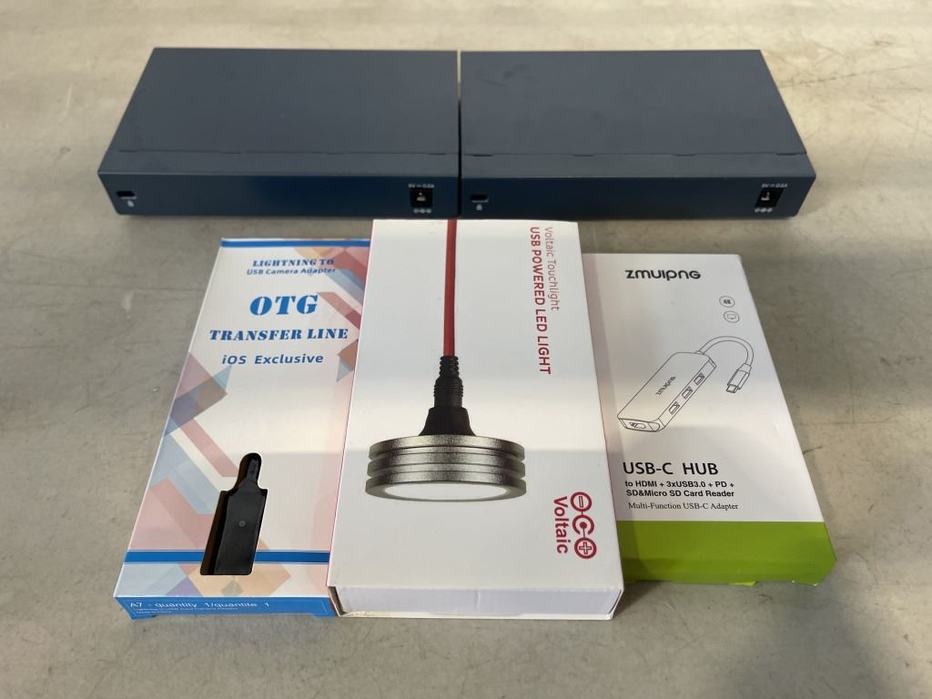 7 IN 1 HUB, USB POWERED LED LIGHT, LIGHTNING CAMERA ADAPTER AND TWO NETWORK SWITCHES