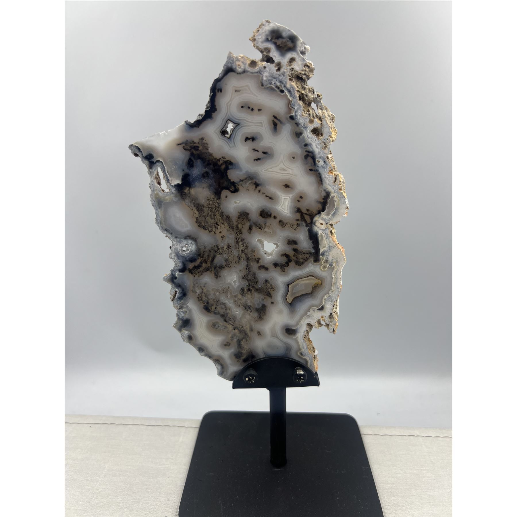7 INCH BLACK AND WHITE NATURAL FORMATION AGATE SLICE