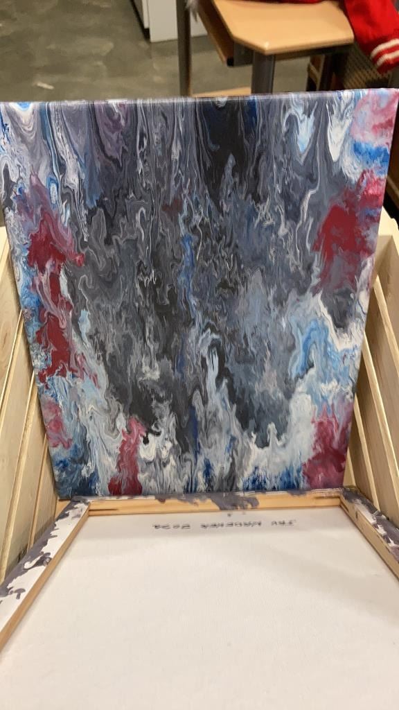 7 ORIGINAL ACRYLIC PAINTINGS WITH WOOD CRATE