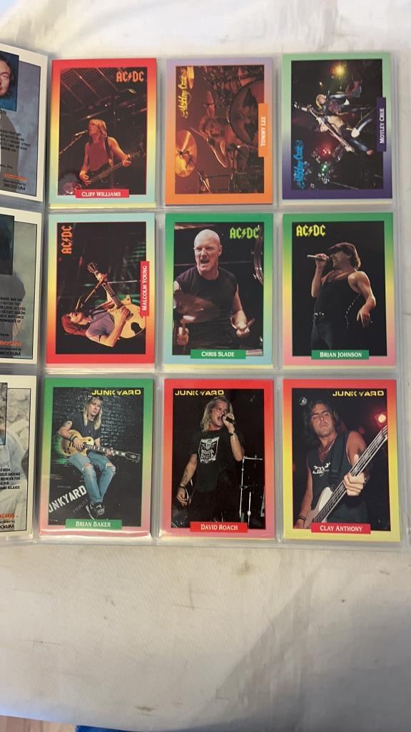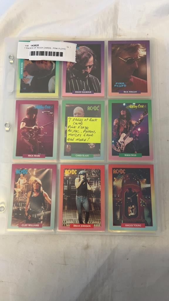 7 PAGES OF ROCK CARDS - PINK FLOYD, AC/DC, POISON, MOTLEY CRUE ETC