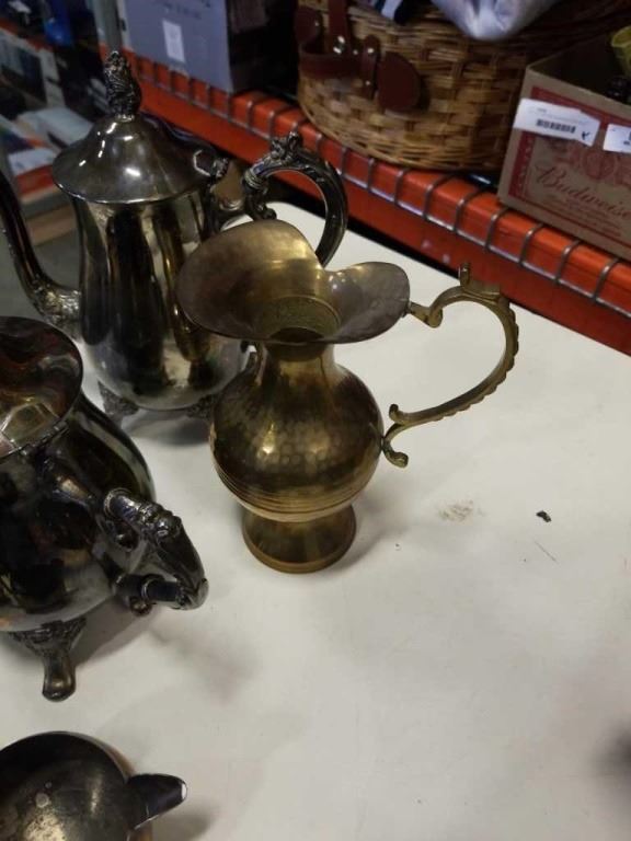 7 PC SILVER PLATE AND BRASS COLLECTIBLES