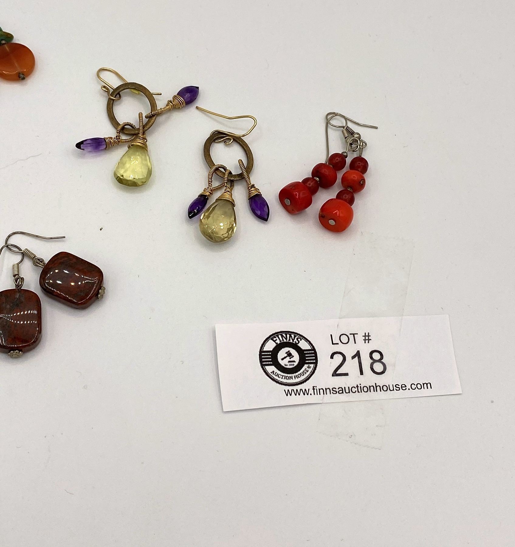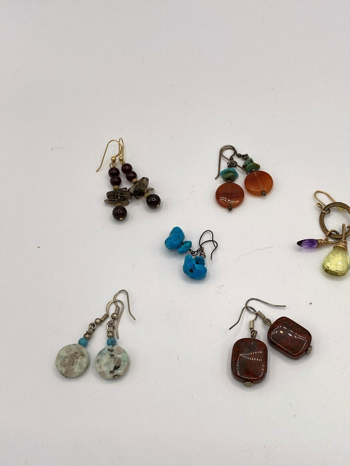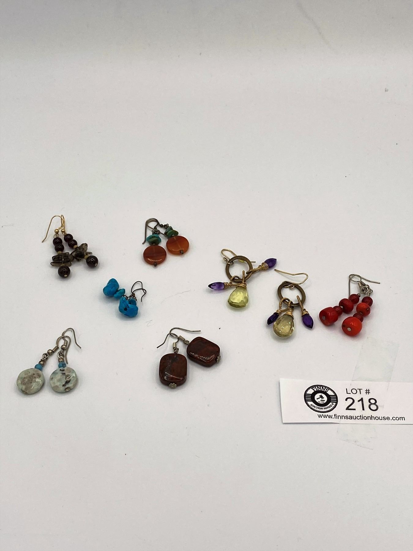 7 Pair Polished Stone Earrings Including Citrine & Amethyst