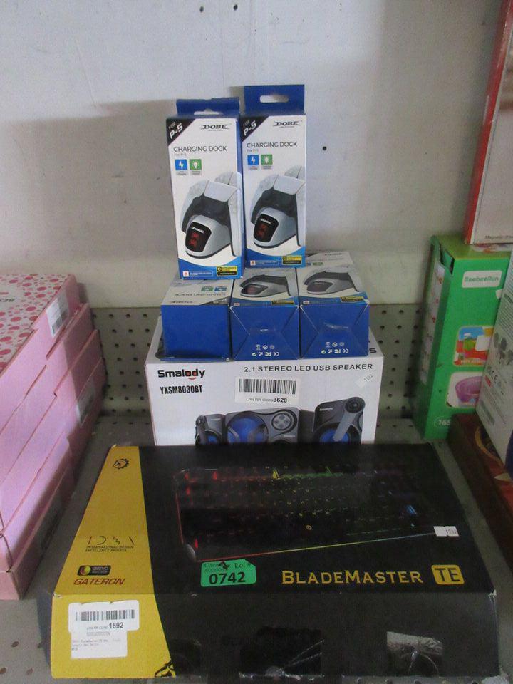 Blademaster TE keyboard, 2.1 stereo LED USB speakers & 5 charging docks for P5 controllers