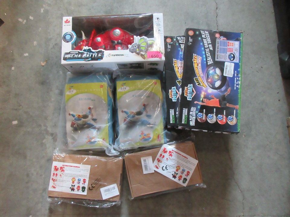 Battle dinosaur, 2 inflatable toys, felt super hero craft toys and 2 table top soccer.