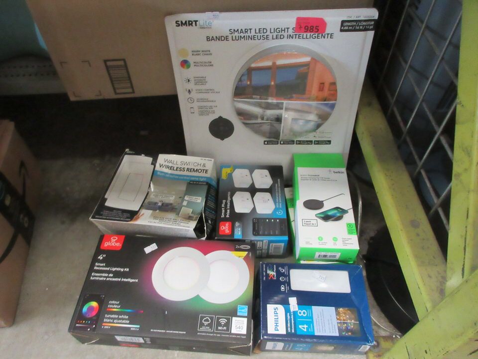 Belkin cell phone chargers, smart plugs, wireless remote wall switches, and smart LED lights. Open box.
