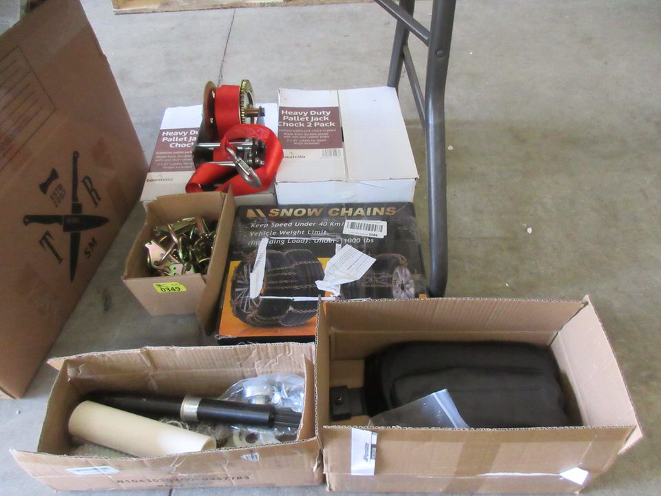Tire chains, pallet jack chocks, boat trailer winch and more.