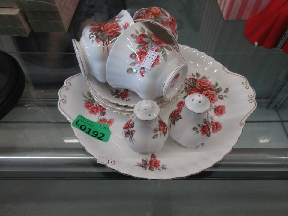 4 Teacup and Saucer sets, Salt and Pepper with 10" Desert Tray.