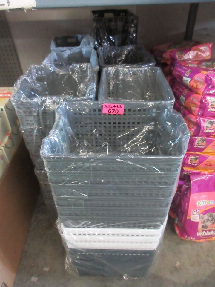 7 Stacks of Plastic Organizer Baskets