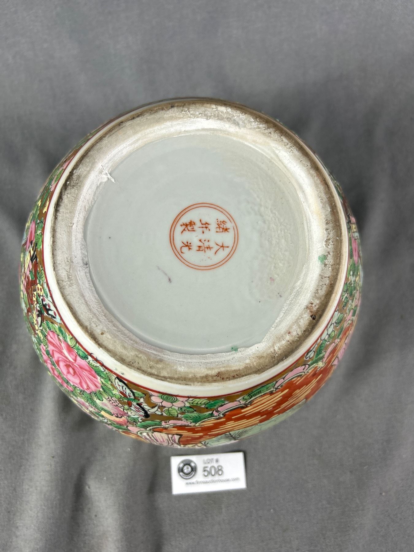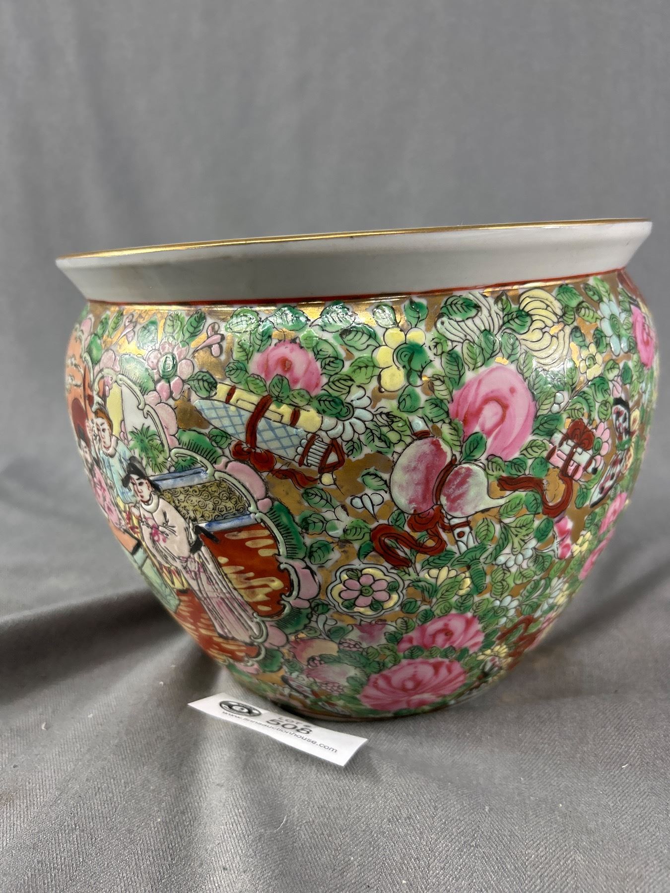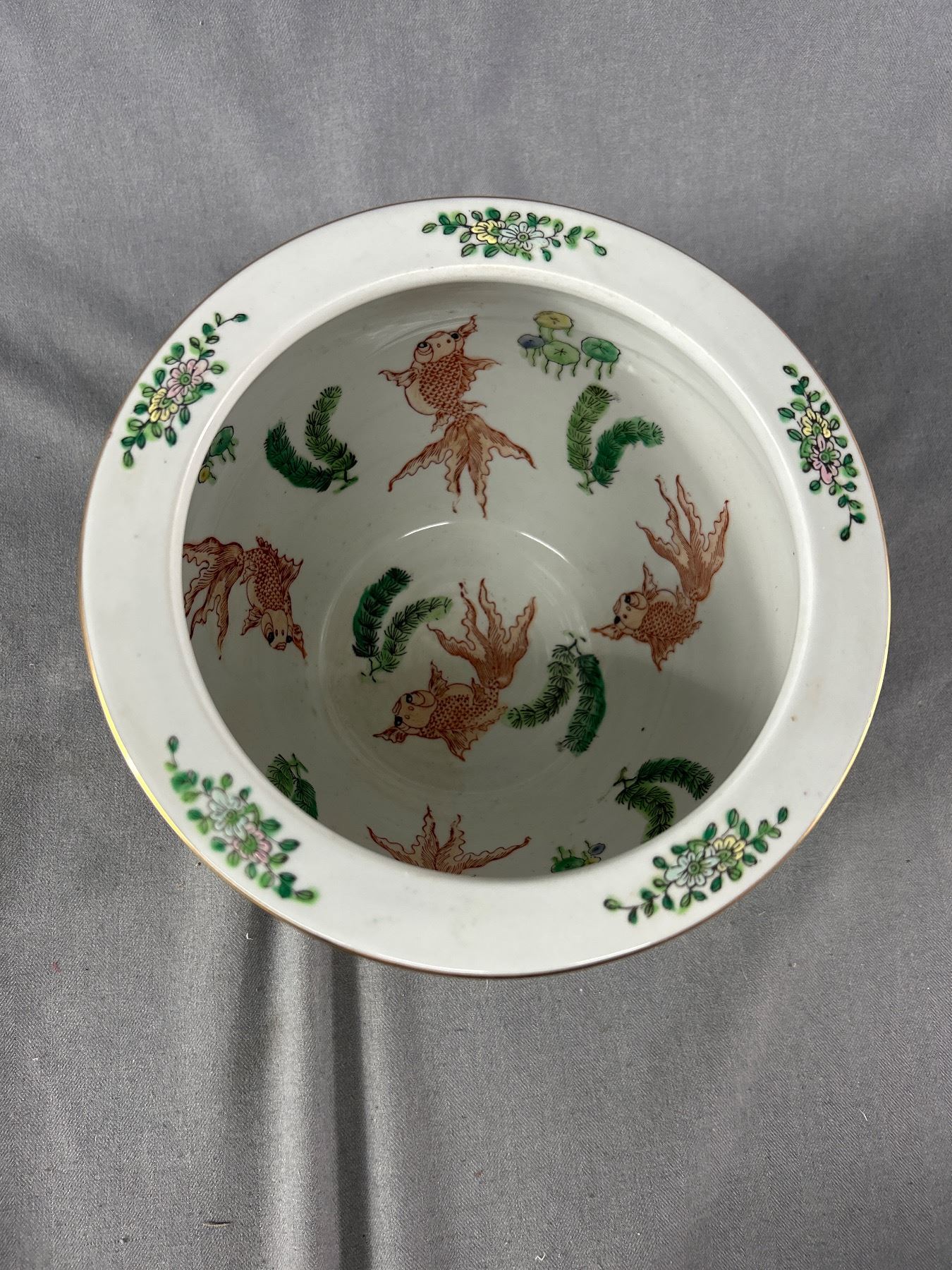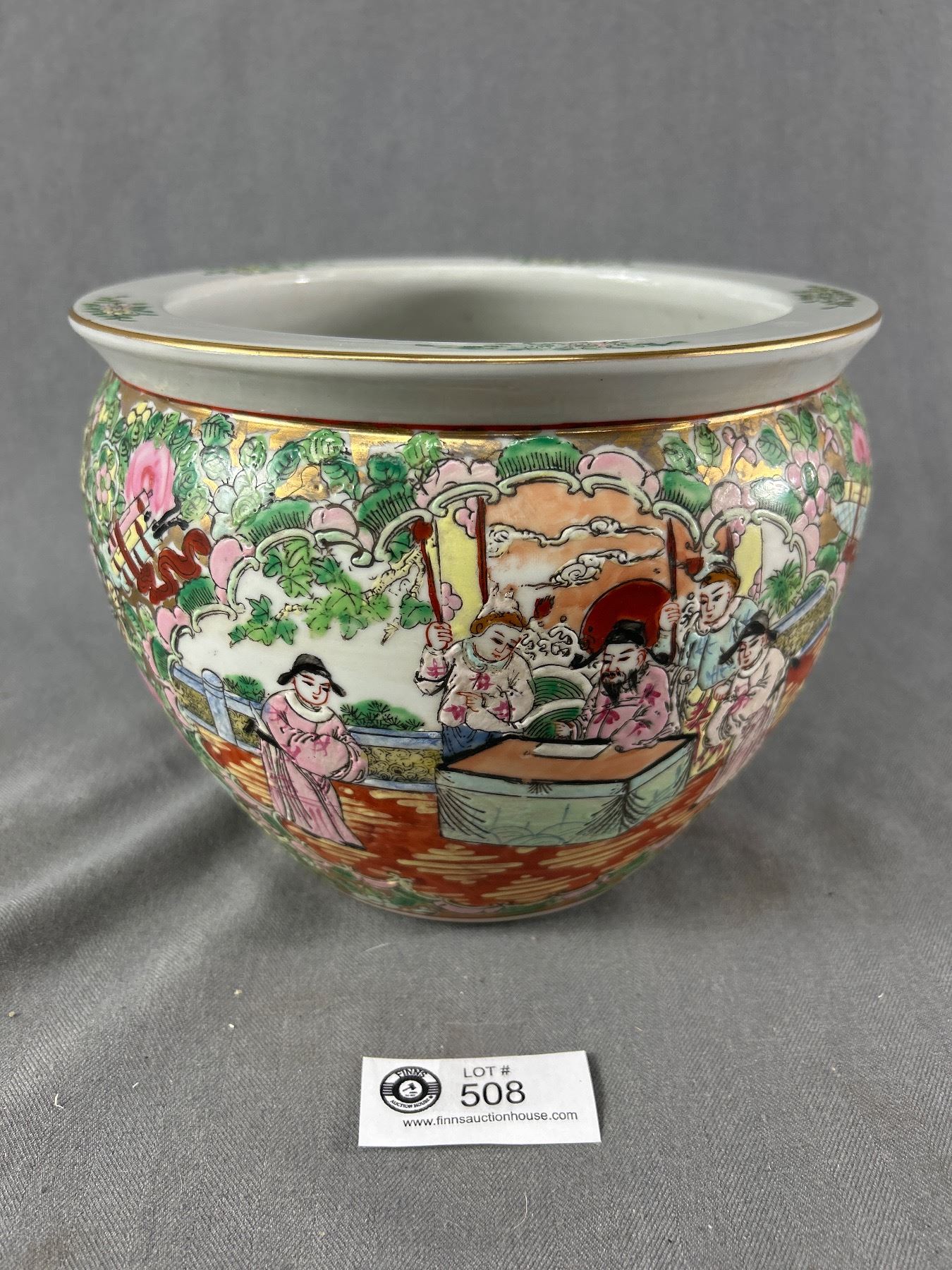 7"Tall 8.5" Diameter Satsuma Hand painted Flower Pot with Goldfish Motif